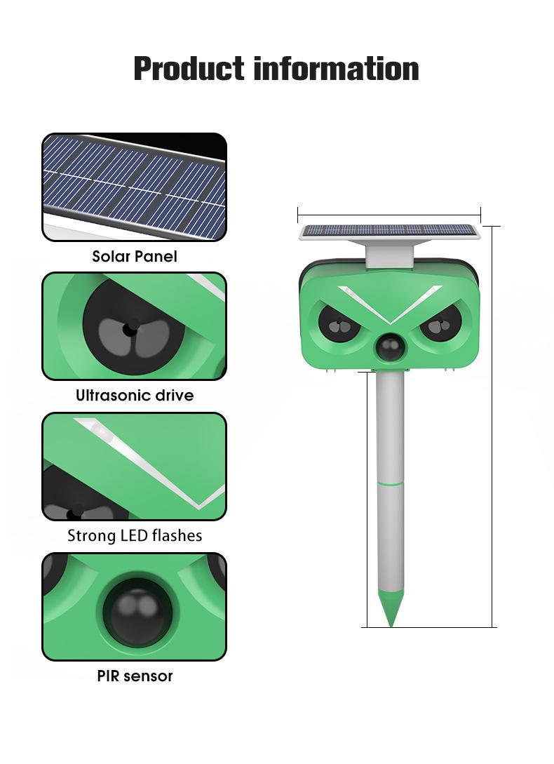Repelente Ultrasónico de Ratas Transfronterizo Alimentado por Energía Solar Carga USB Alarma Estroboscópica LED Multifrecuencia Cuatro Velocidades Repelente de Aves Disuasorio de Aves para Exteriores