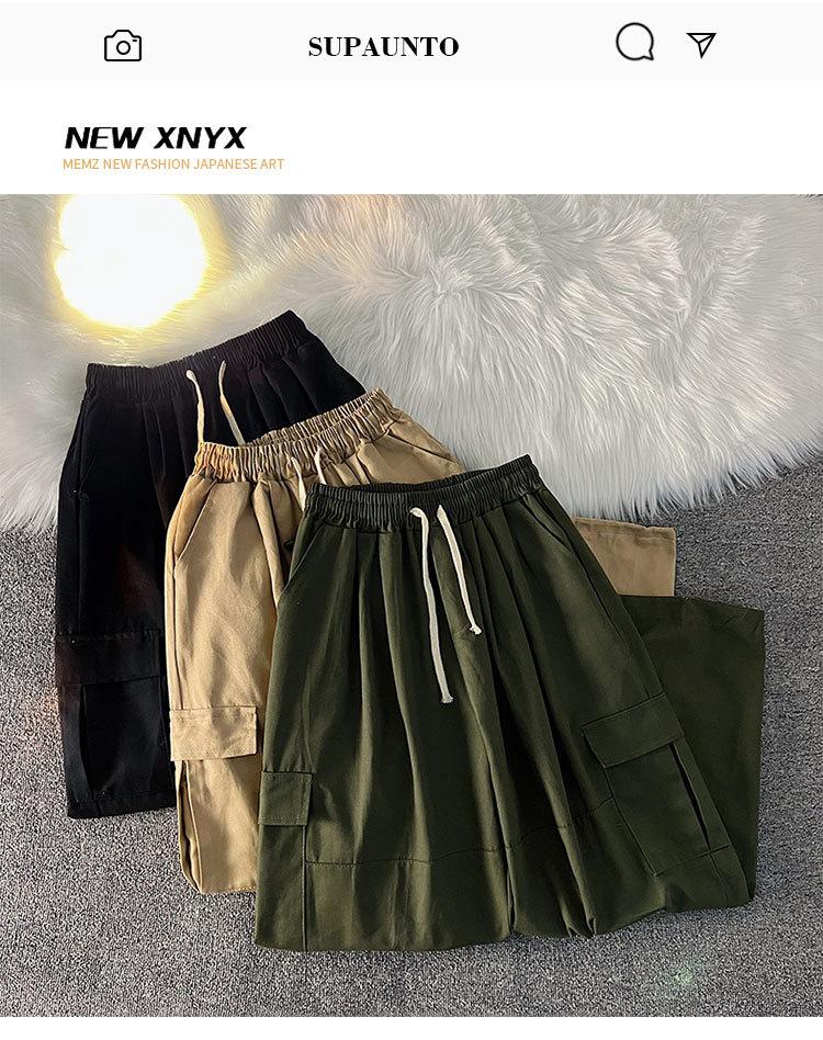 Pantalones rectos para hombre, holgados, de pierna ancha, de marca de moda, estilo Hong Kong, pantalones deportivos de primavera y otoño, estilo coreano, pantalones casuales de moda a juego.