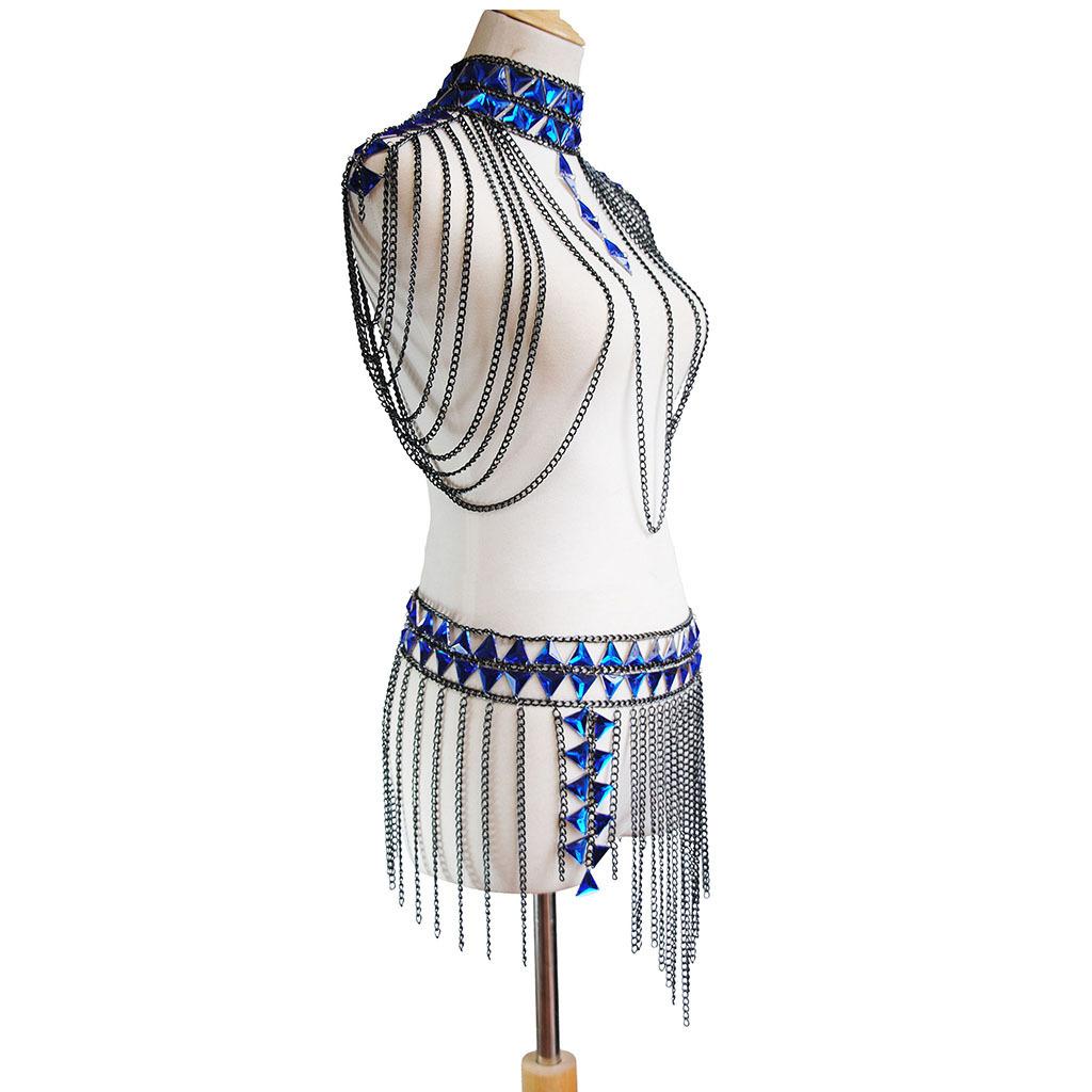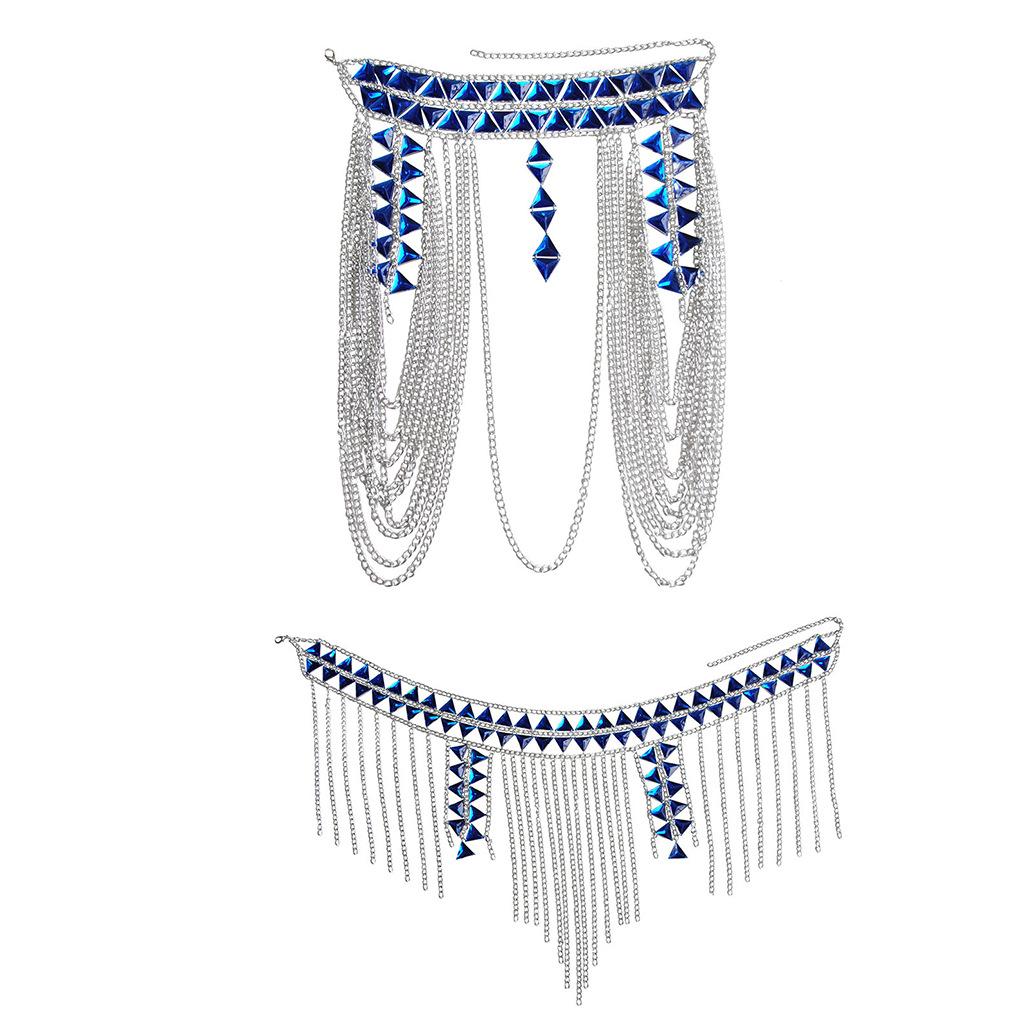 Nuevos accesorios transfronterizos europeos y americanos, cadena corporal con lentejuelas multicapa y borlas, cadena para la cintura, collar sexy, cadena para ropa corporal¥95Compre ya