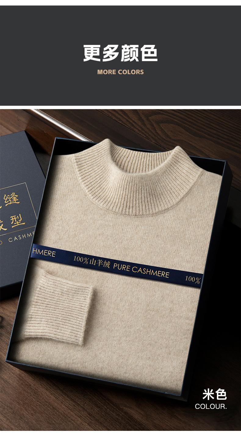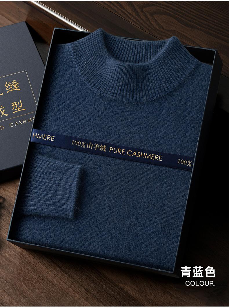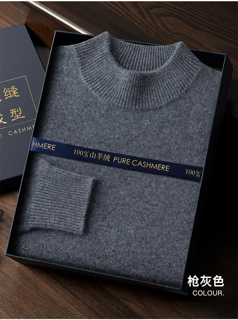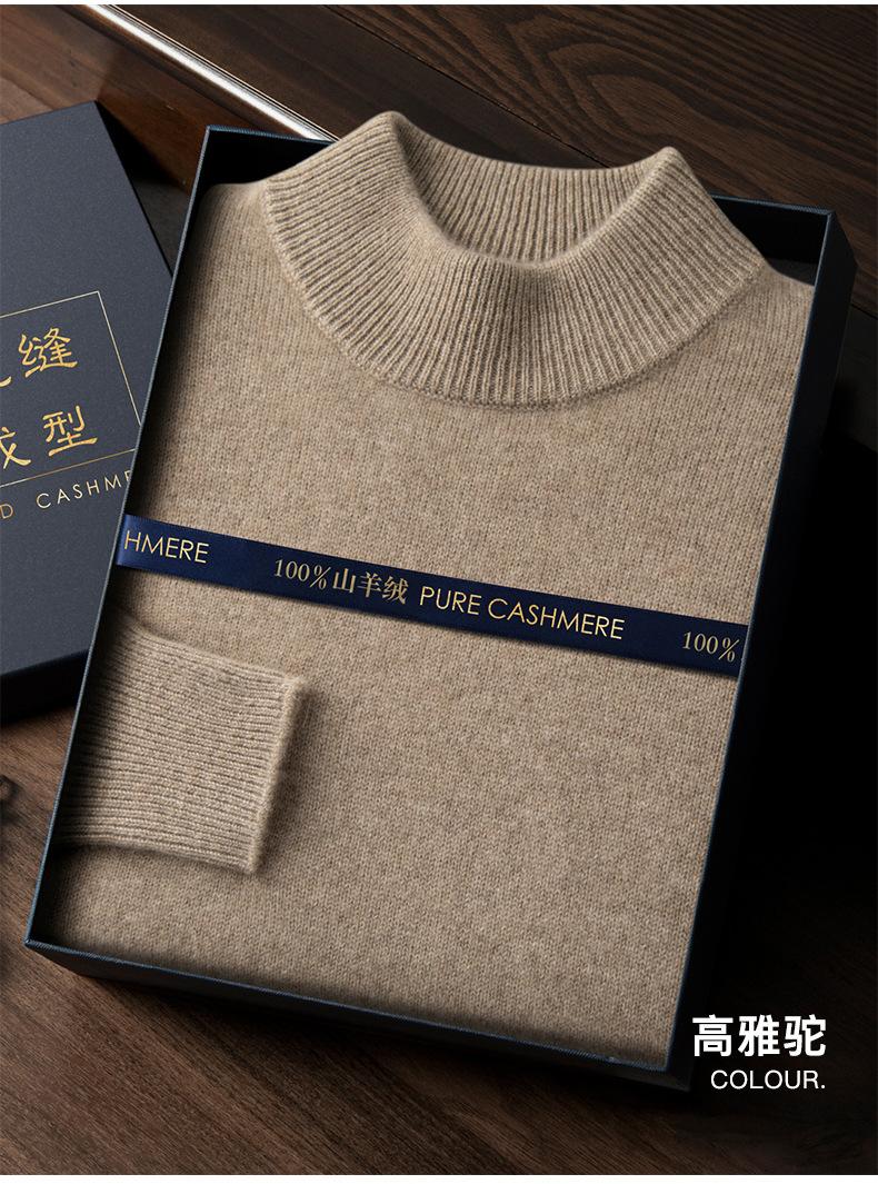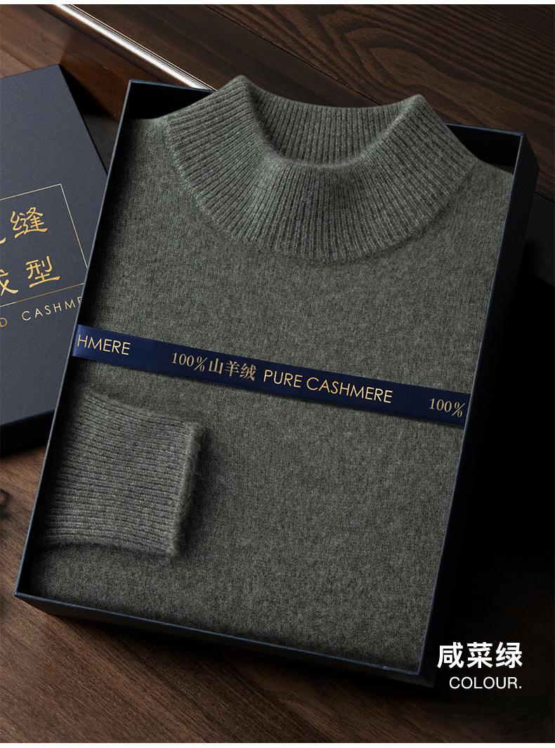 Suéter de cachemira de cuello alto medio para hombre, suéter de punto sin costuras grueso de doble hebra, camisa informal de negocios con fondo cálido