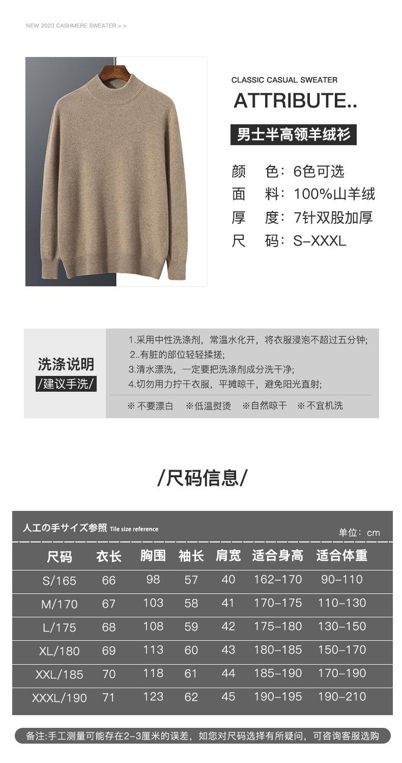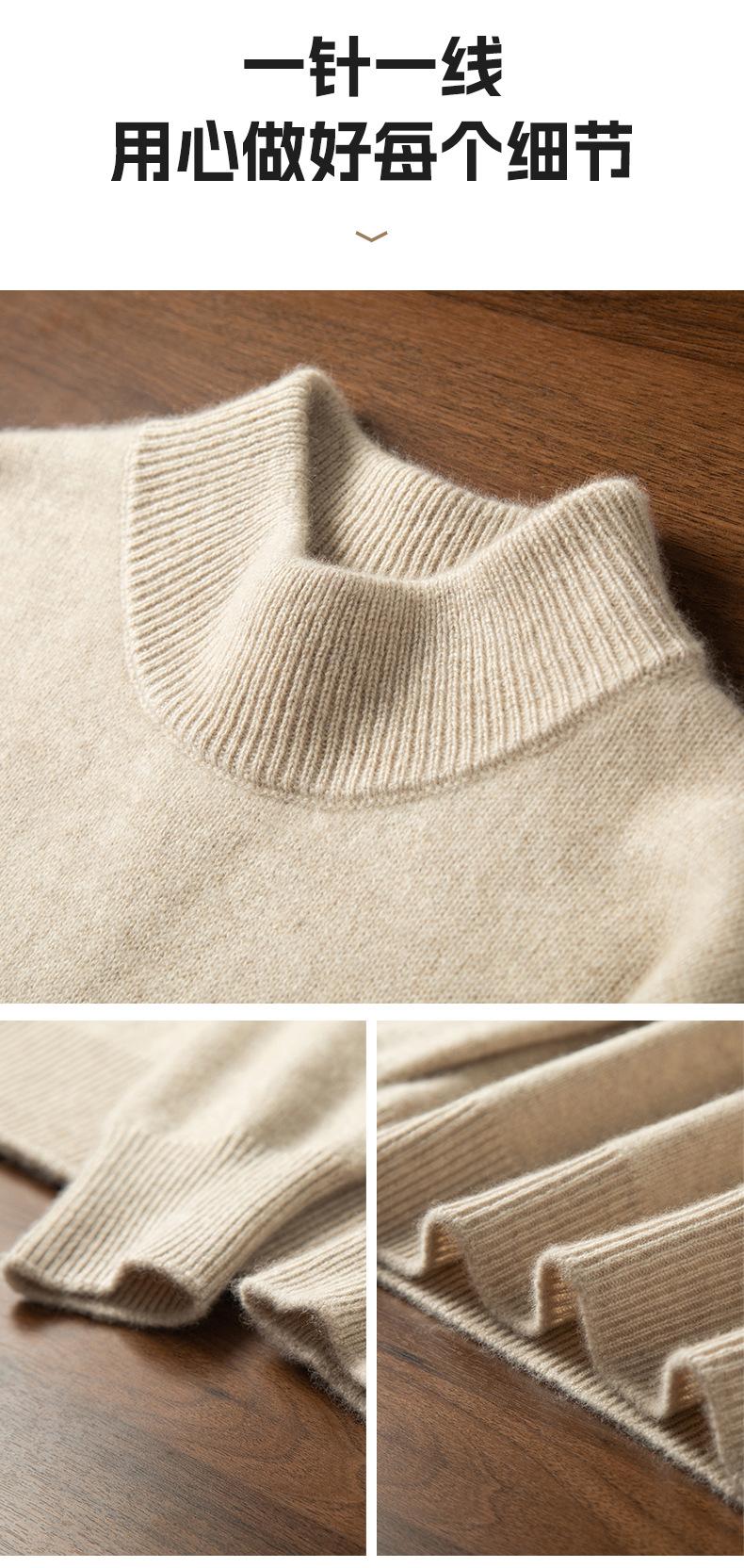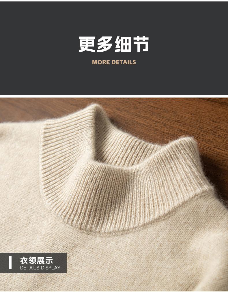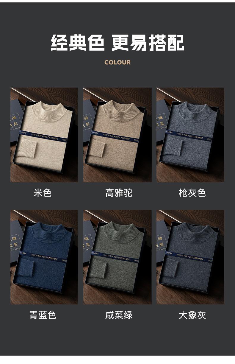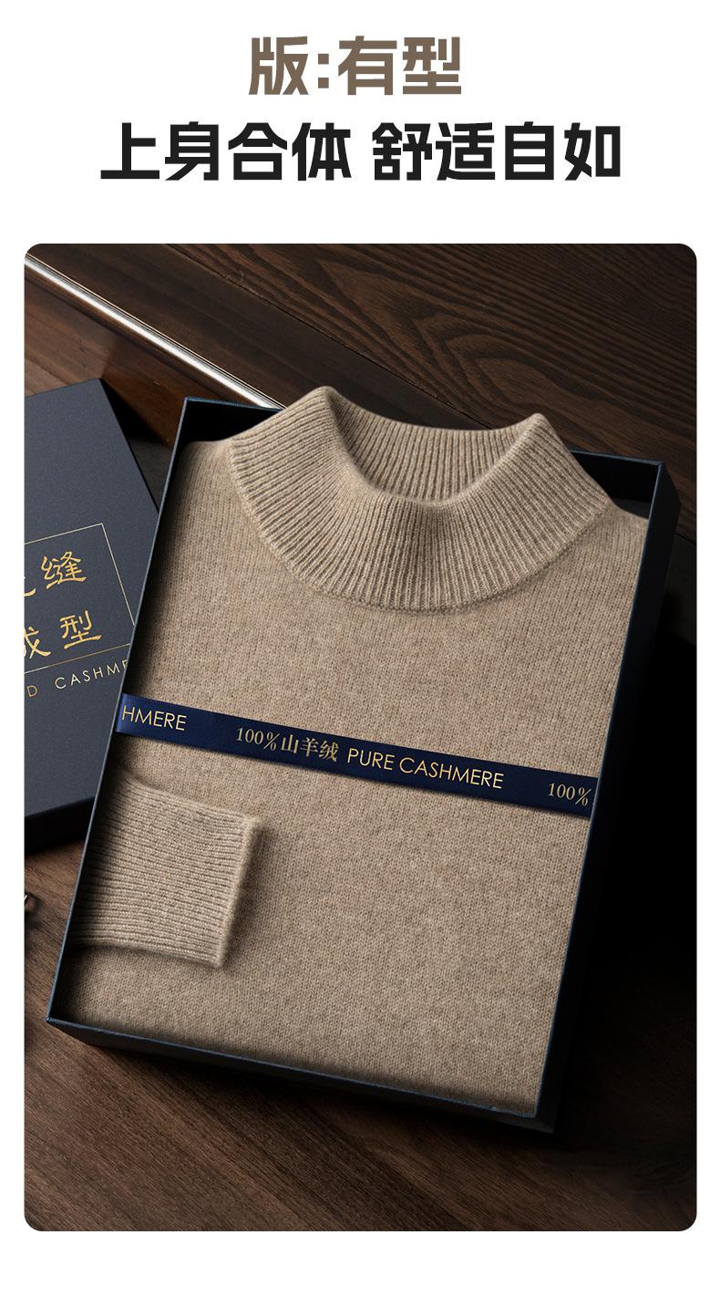 Suéter de cachemira de cuello alto medio para hombre, suéter de punto sin costuras grueso de doble hebra, camisa informal de negocios con fondo cálido