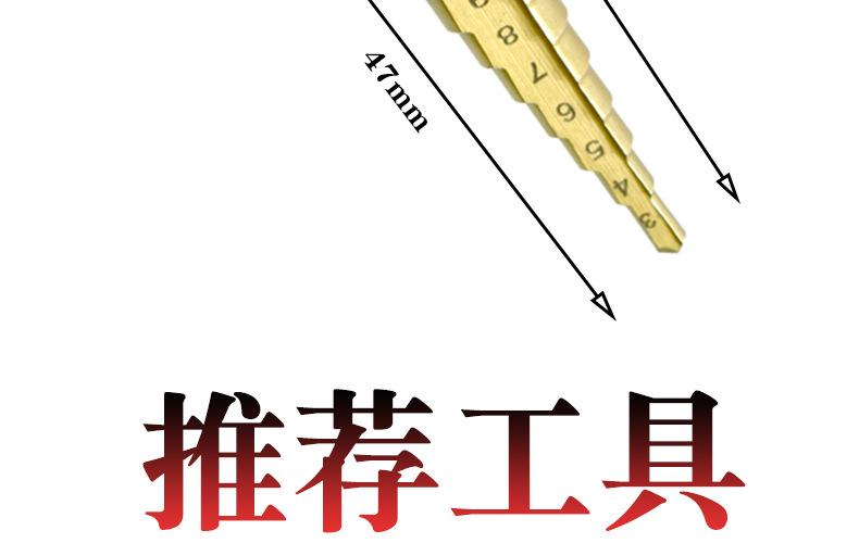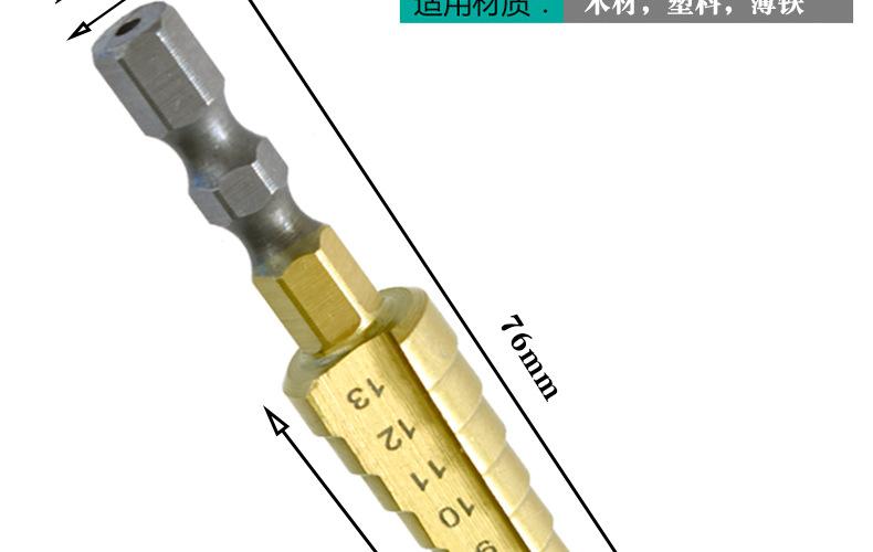 Taladro pagoda transfronterizo 3-13, vástago hexagonal, taladro escalonado chapado en titanio, taladro eléctrico manual, herramienta de perforación, taladro escalonado de ranura recta, venta al por mayor