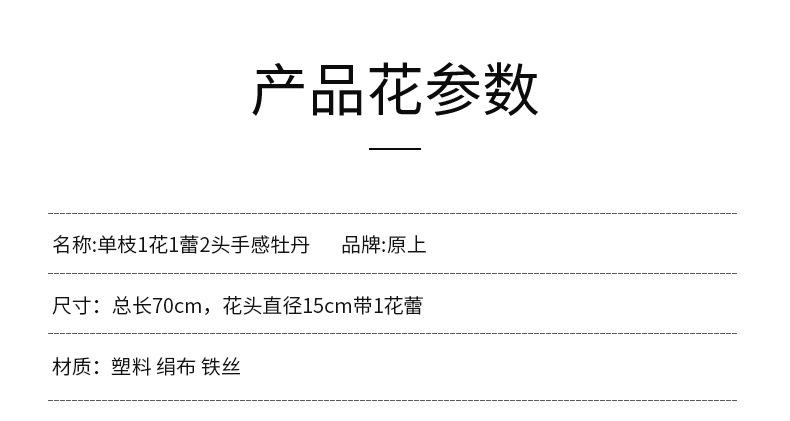 Nombre del producto: Rama única, 1 flor, 1 brote, 2 cabezas de peonía.