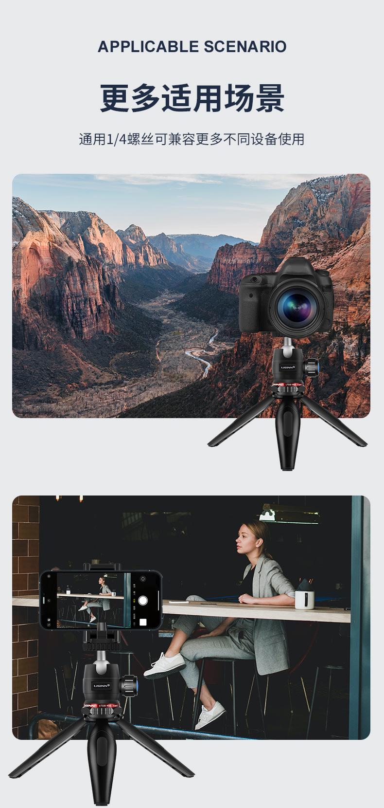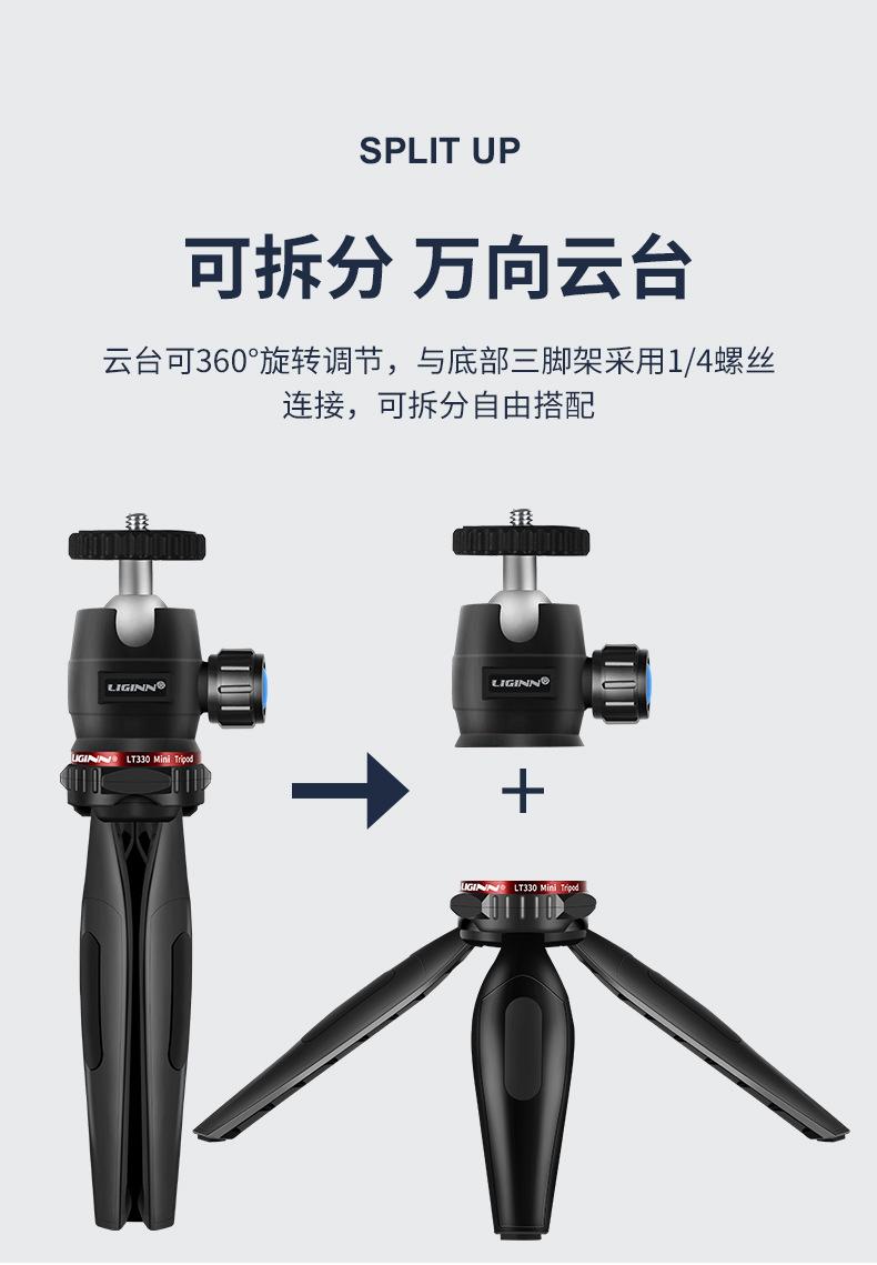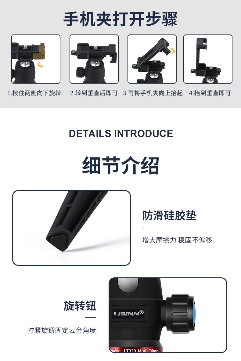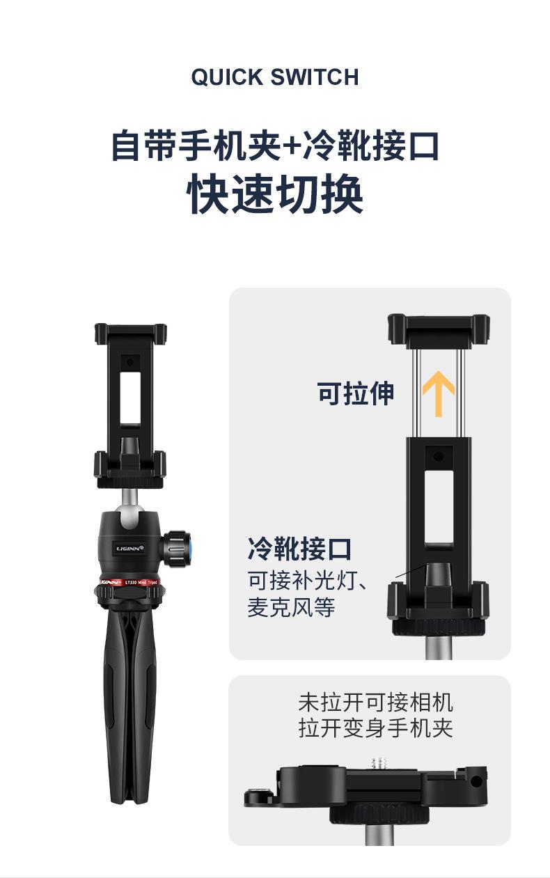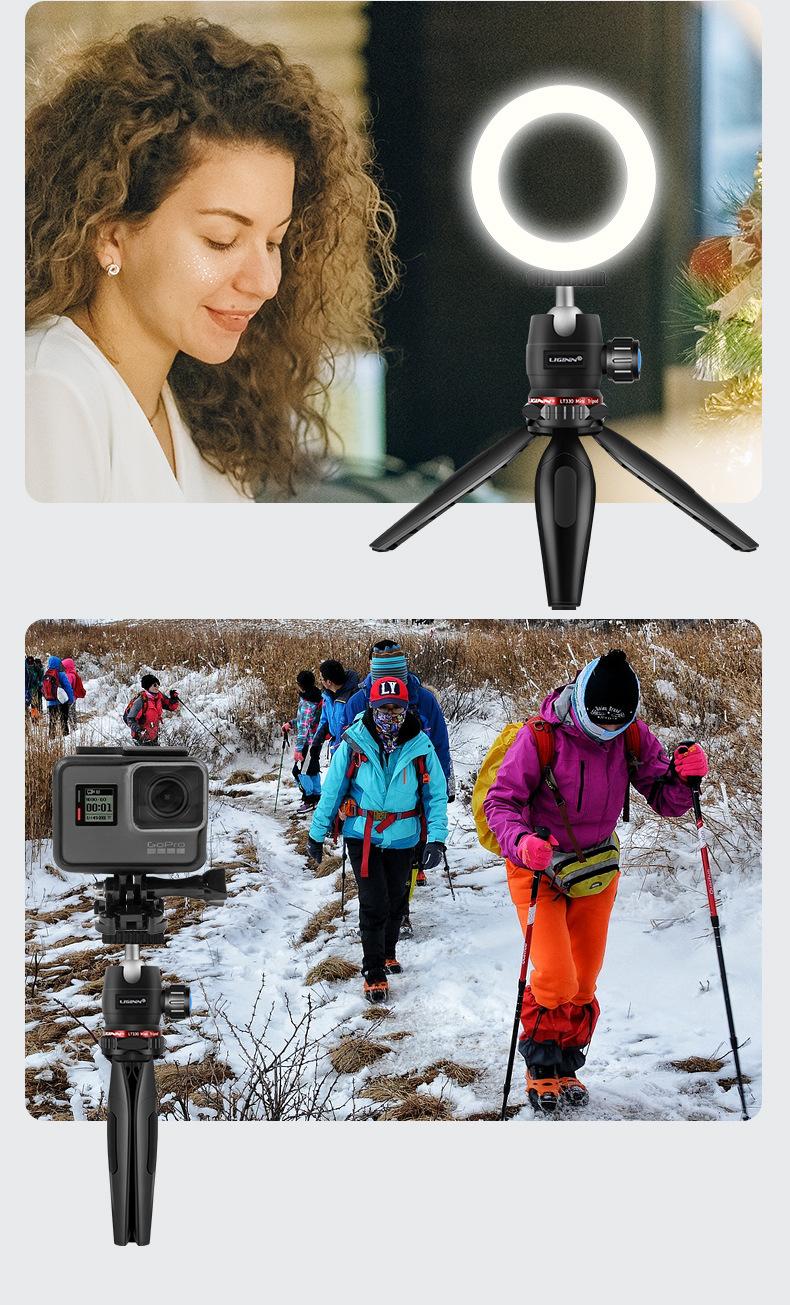 LIGINN LT330 teléfono móvil cámara sin espejo mini trípode de escritorio palo selfie Gopro soporte ajustable para transmisión en vivo