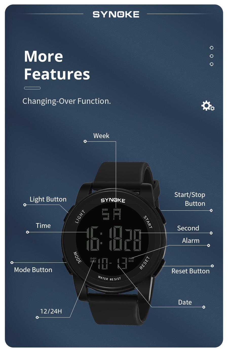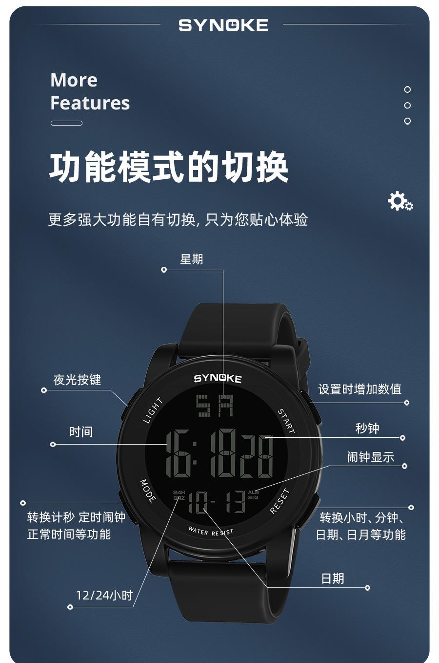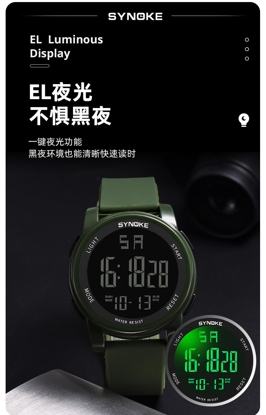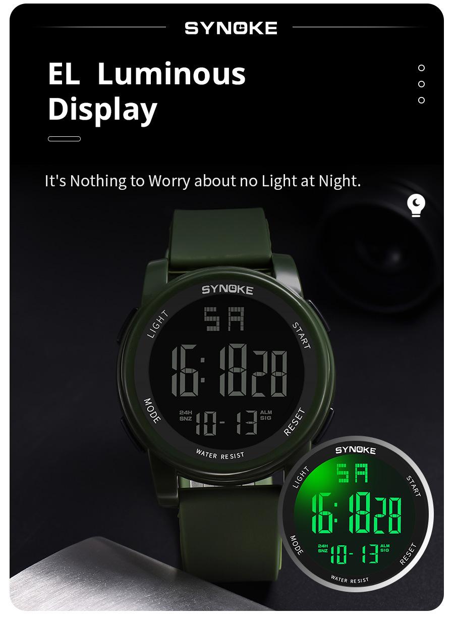 Productos de fábrica SYNOKE reloj electrónico para hombre para deportes al aire libre 5Bar natación impermeable multifuncional pantalla grande luminoso potente
