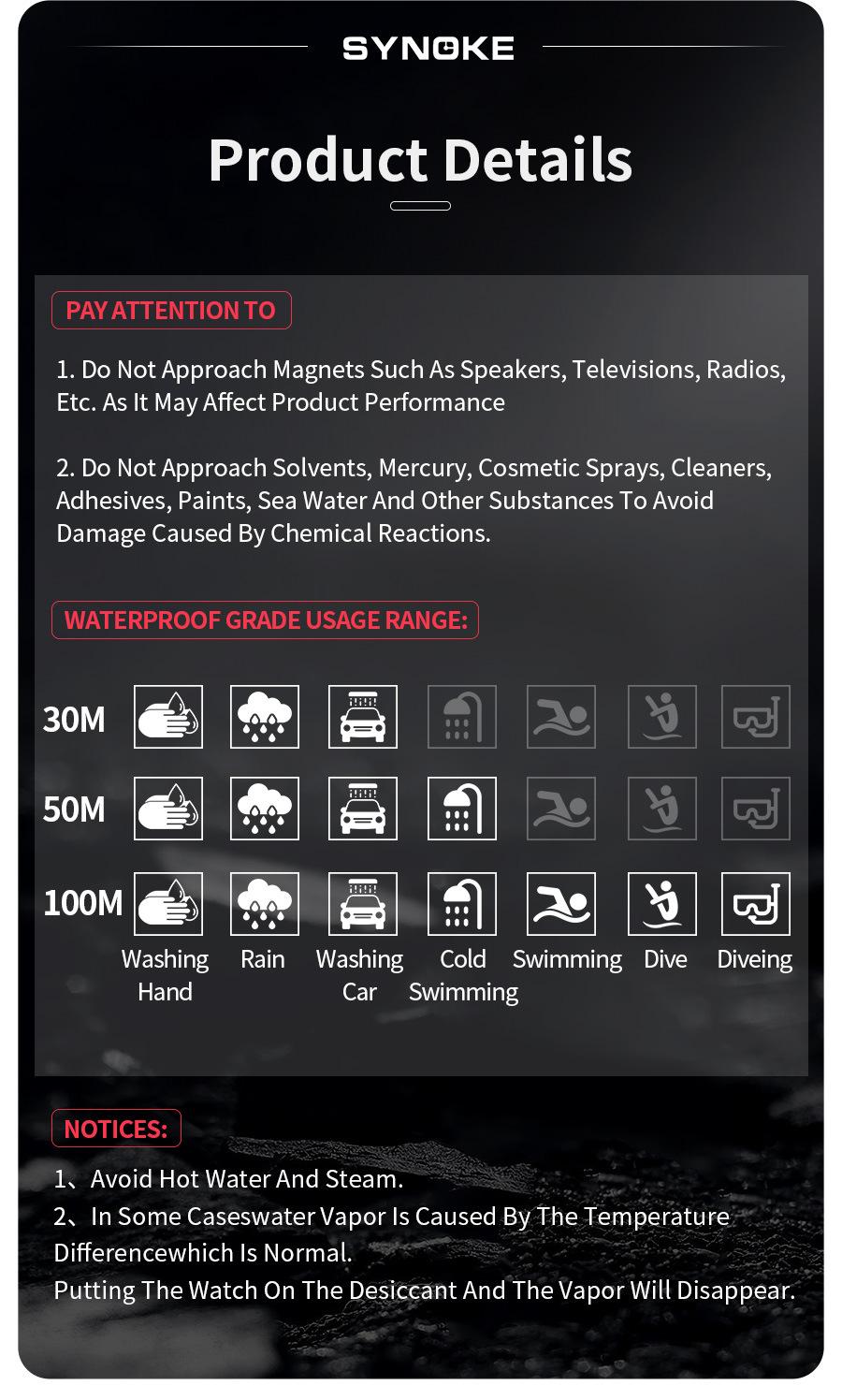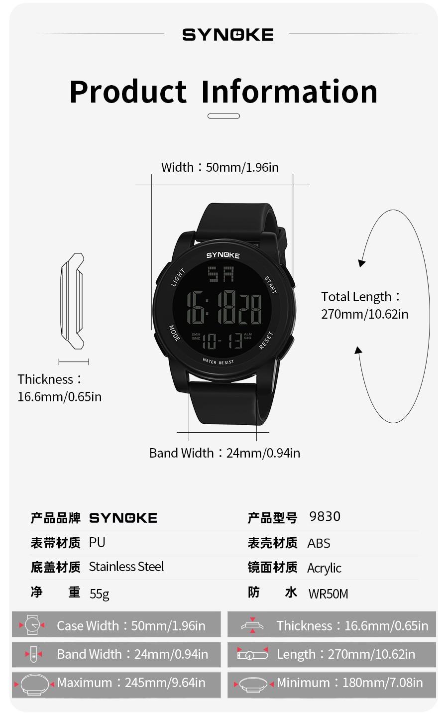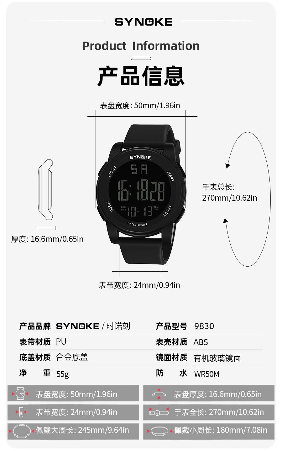 Productos de fábrica SYNOKE reloj electrónico para hombre para deportes al aire libre 5Bar natación impermeable multifuncional pantalla grande luminoso potente