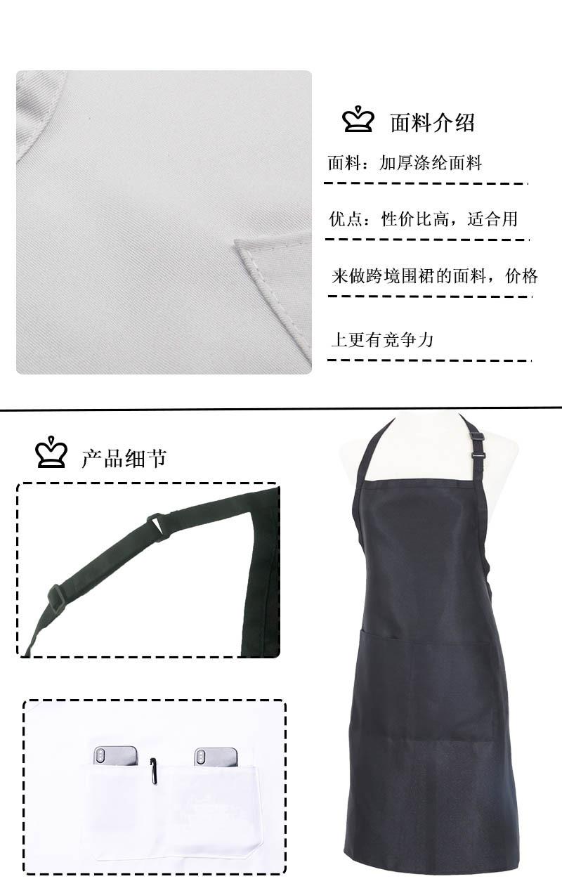 Delantal de cocina negro de Amazon con hebilla ajustable y logotipo impreso de gran tamaño para hombres y mujeres, delantal publicitario transfronterizo.