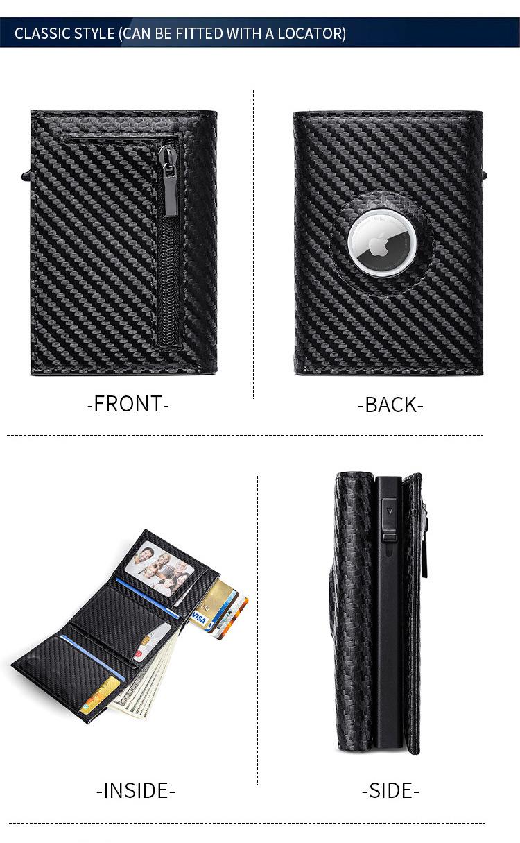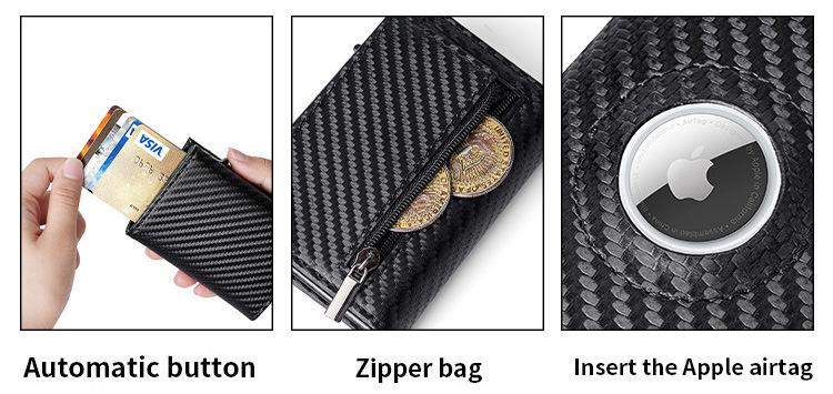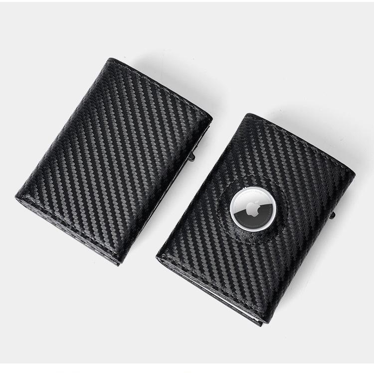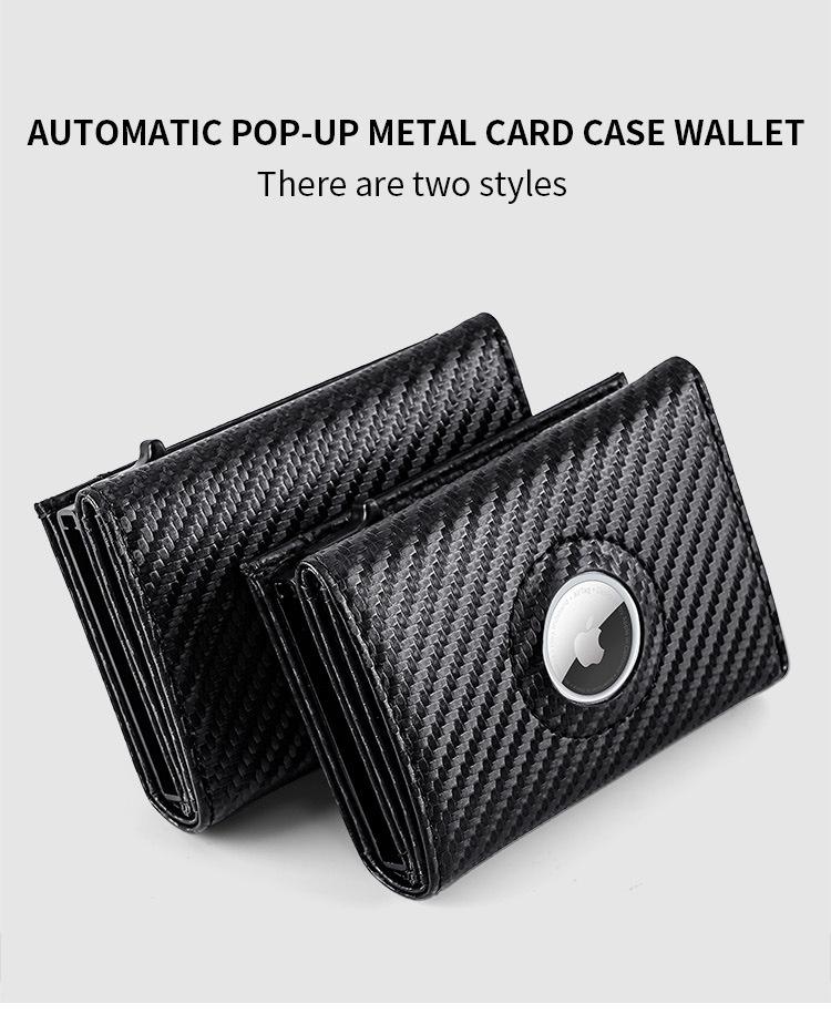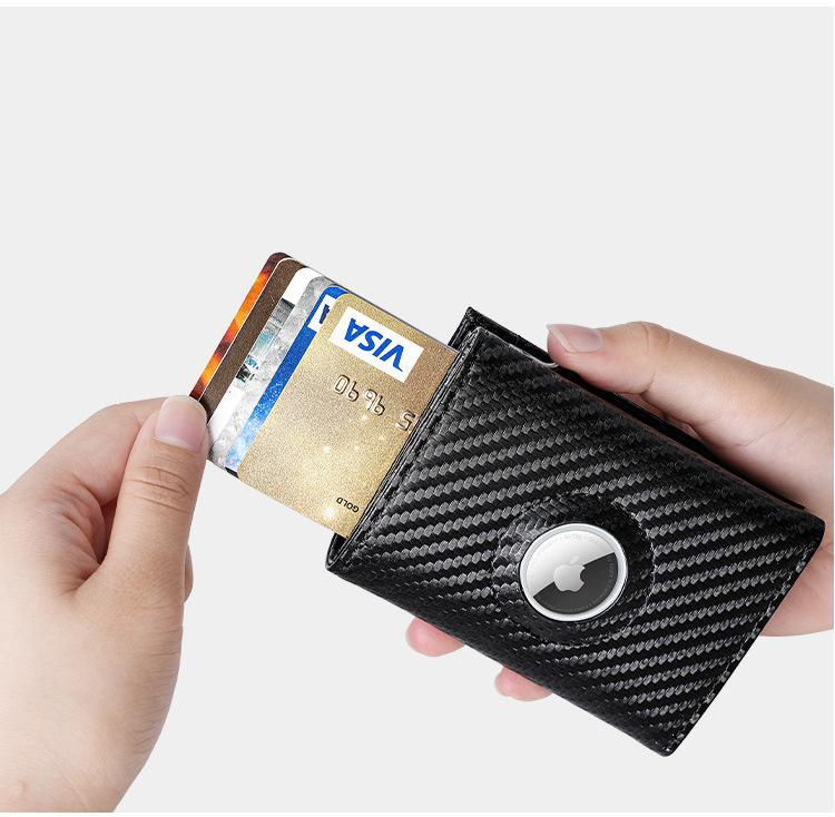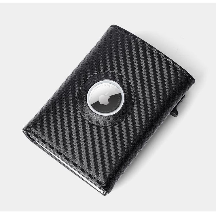 Cartera automática con diseño de fibra de carbono y seguimiento de posicionamiento Airtag para hombre, tarjetero magnético de aluminio y metal.
