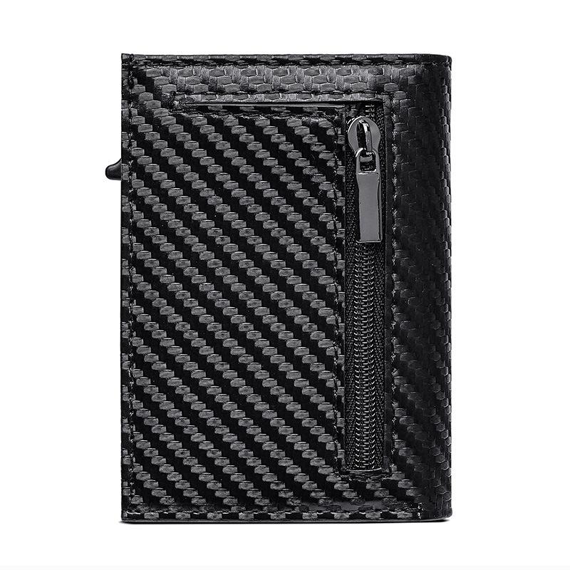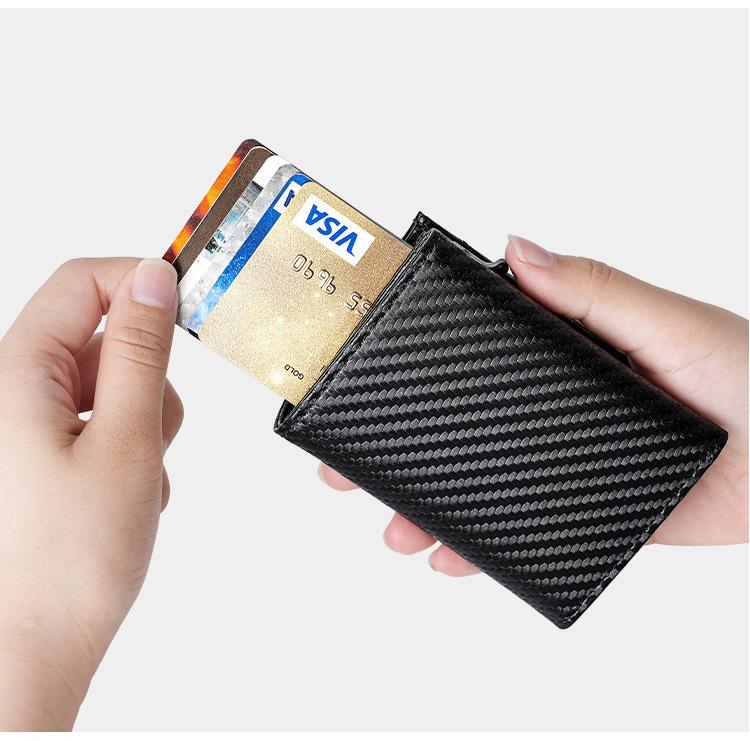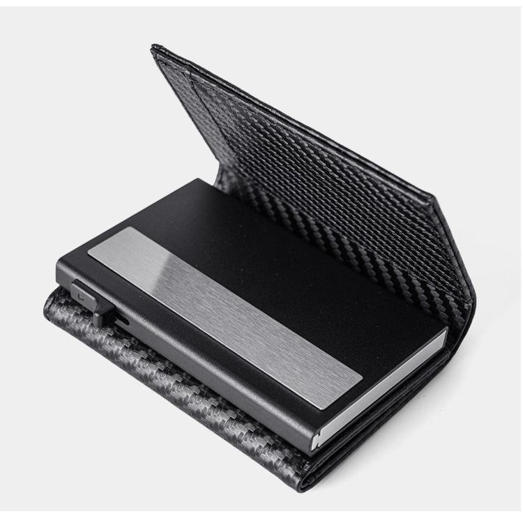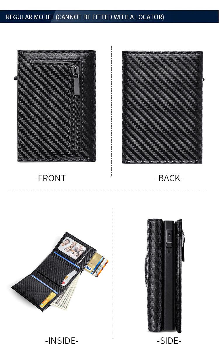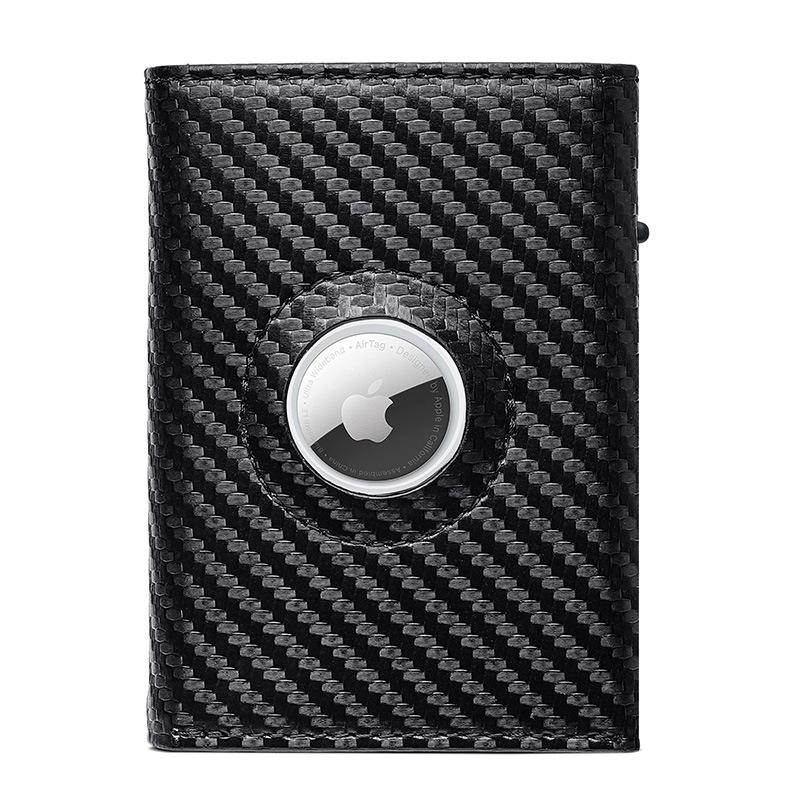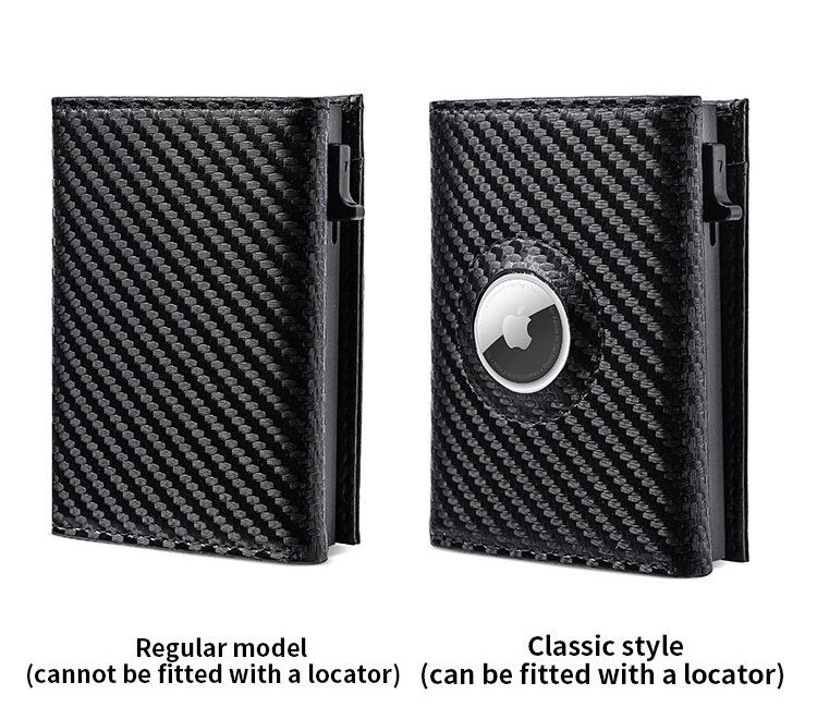 Cartera automática con diseño de fibra de carbono y seguimiento de posicionamiento Airtag para hombre, tarjetero magnético de aluminio y metal.