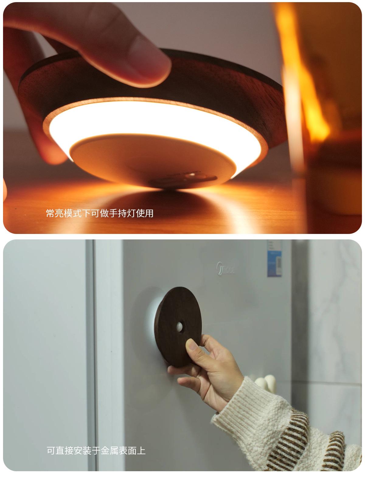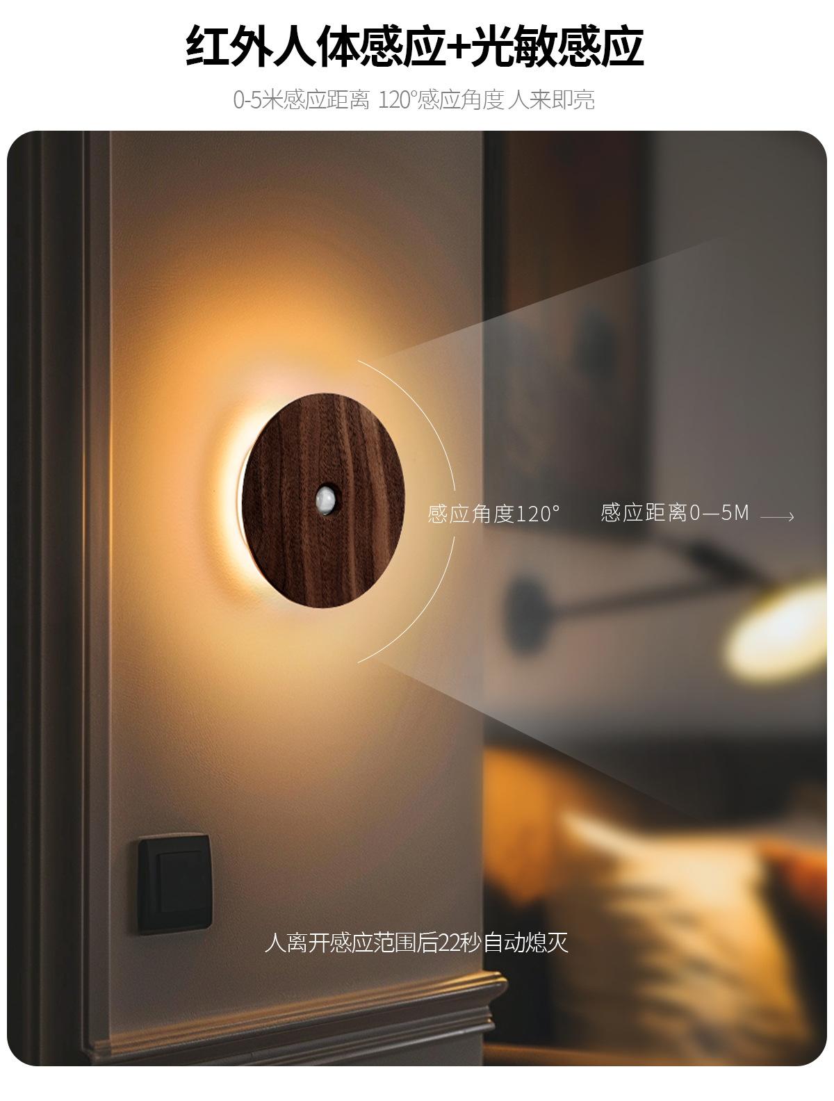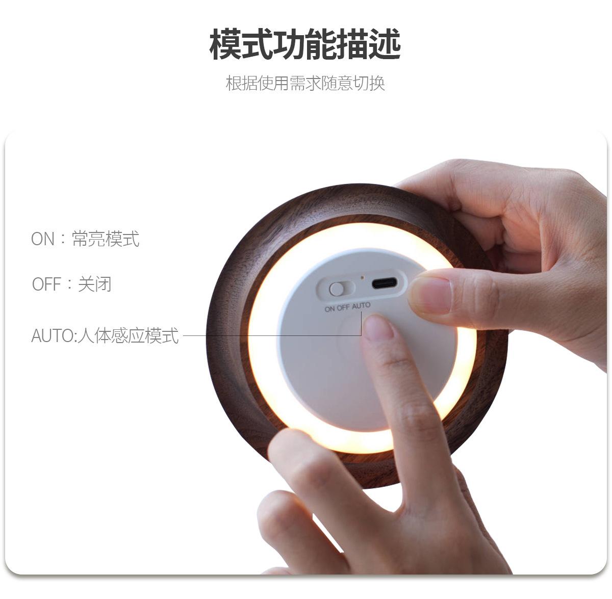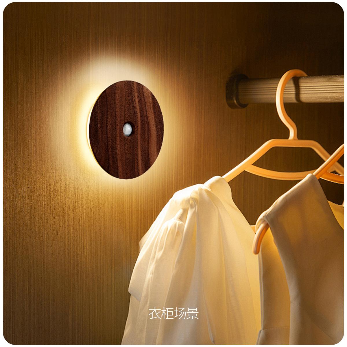 Lámpara de Sensor Magnético de Madera Sólida Luz Nocturna Inteligente Decoración Lámpara de Pared sin Cableado Regalo Cultural y Creativo Lámpara Recargable Pasillo Dormitorio