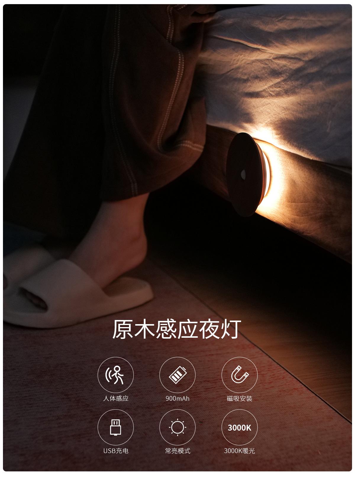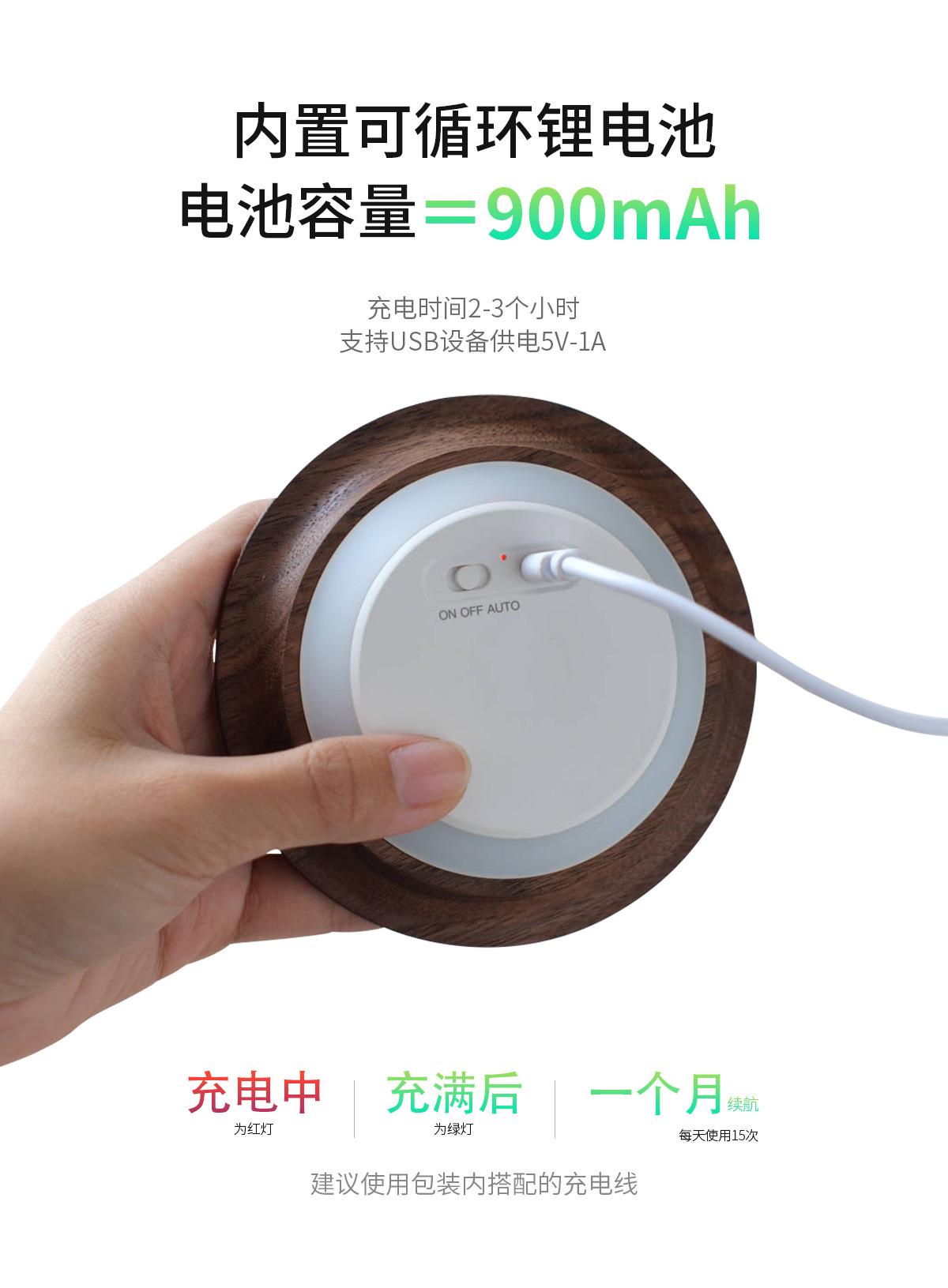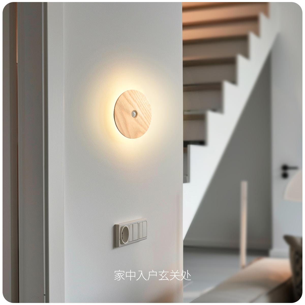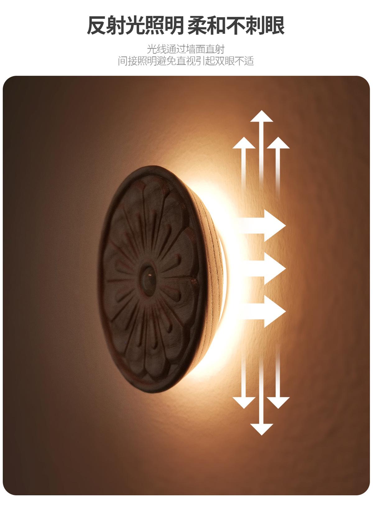 Lámpara de Sensor Magnético de Madera Sólida Luz Nocturna Inteligente Decoración Lámpara de Pared sin Cableado Regalo Cultural y Creativo Lámpara Recargable Pasillo Dormitorio