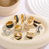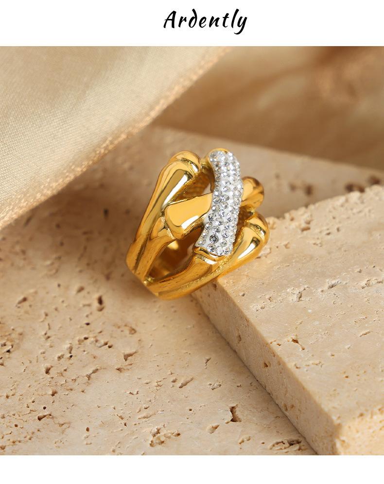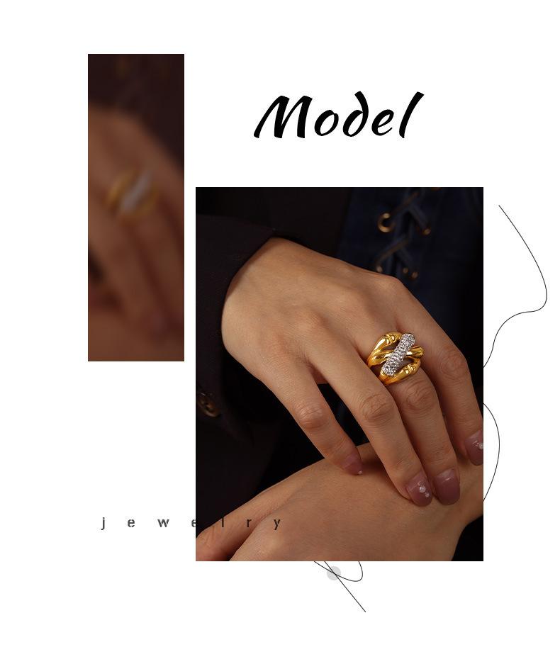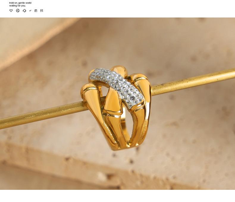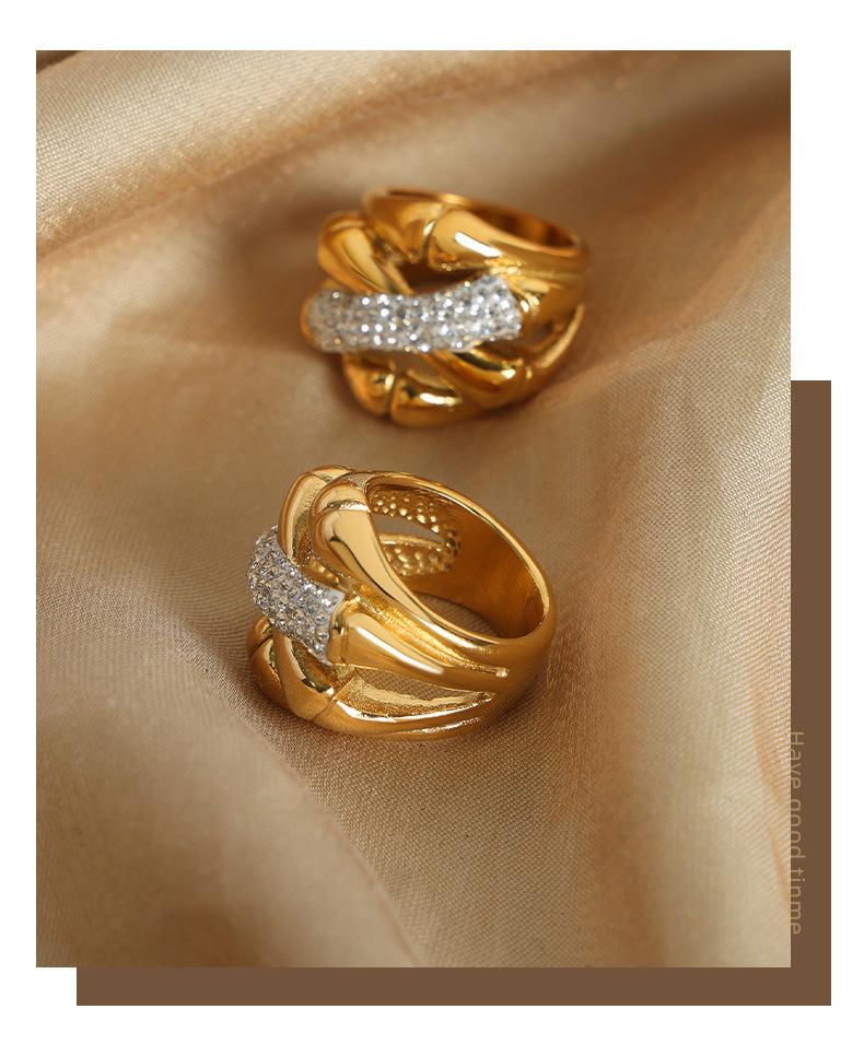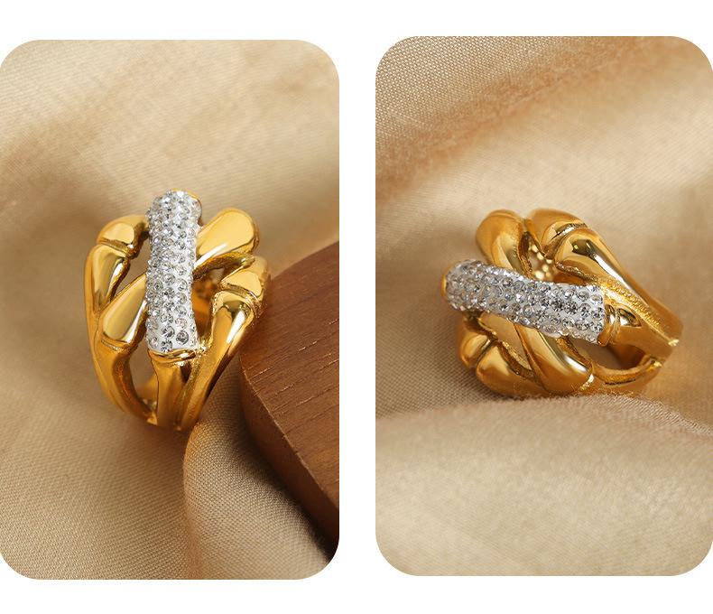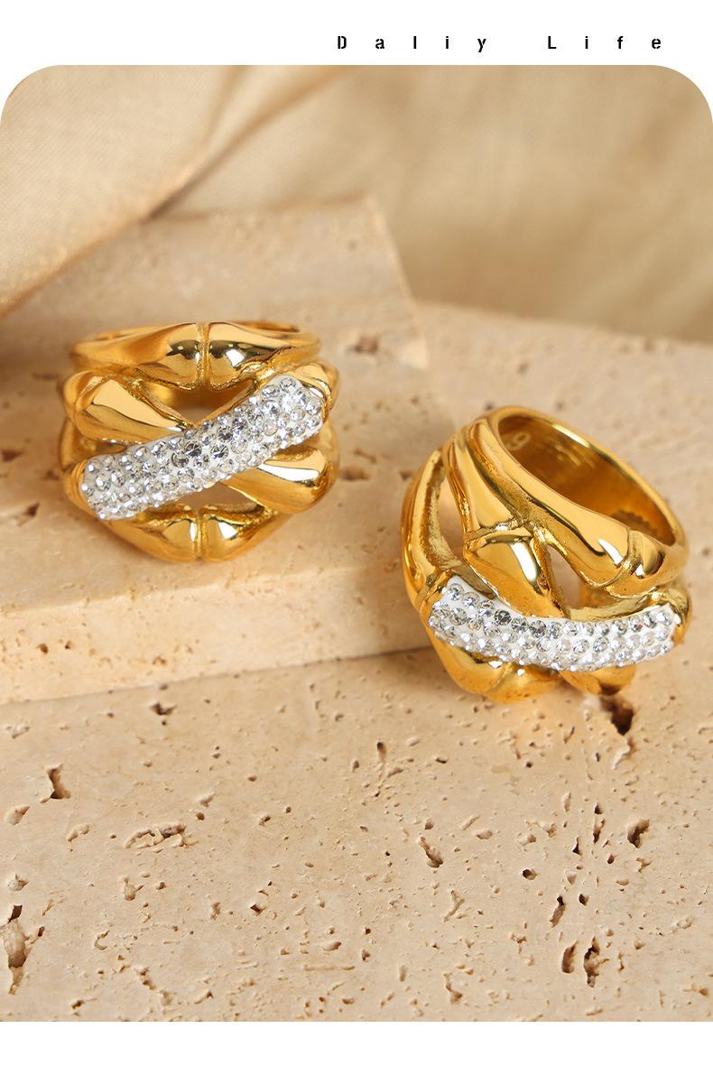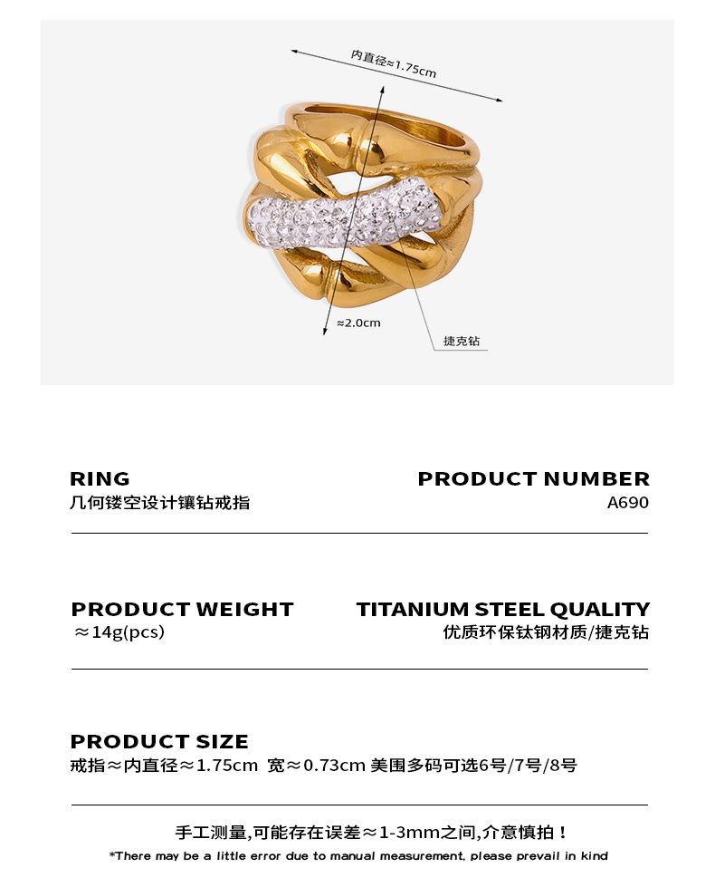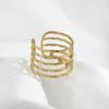 Anillo de acero de titanio chapado en oro de 18 quilates personalizado transfronterizo europeo y americano con diseño de nicho hueco geométrico, anillo de diamantes al por mayor para mujer