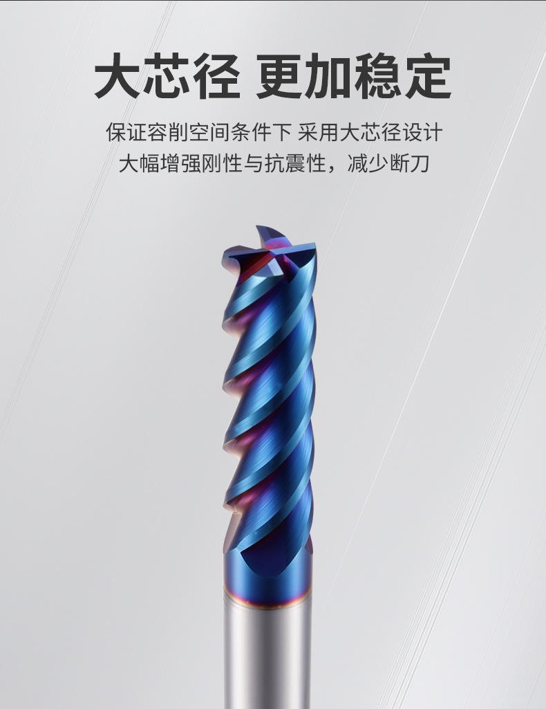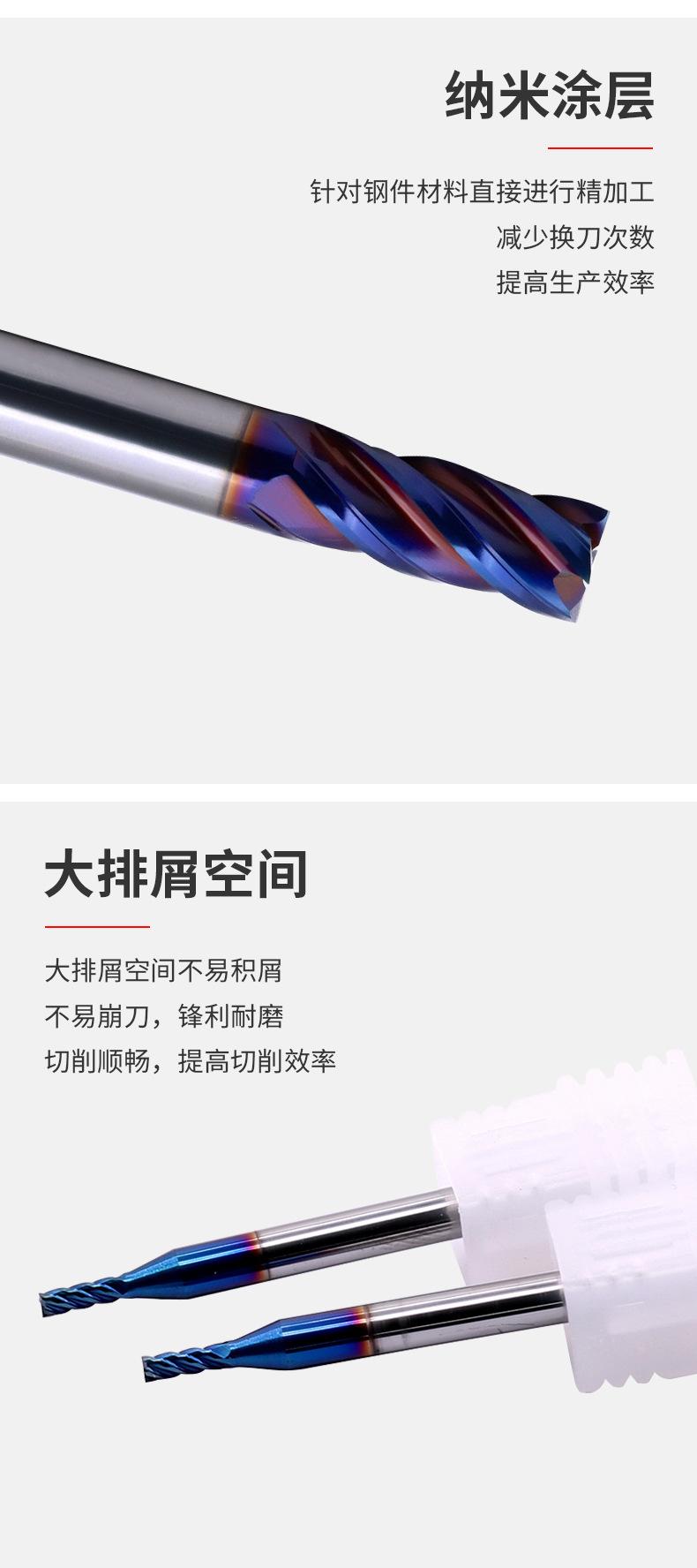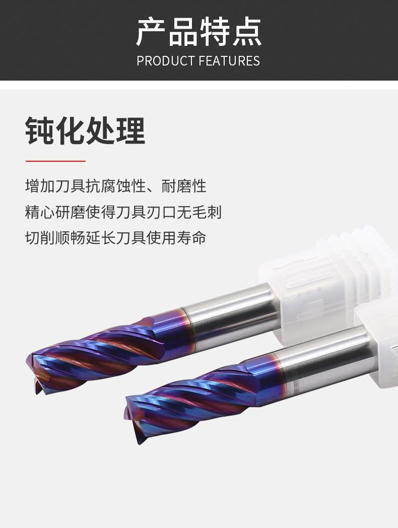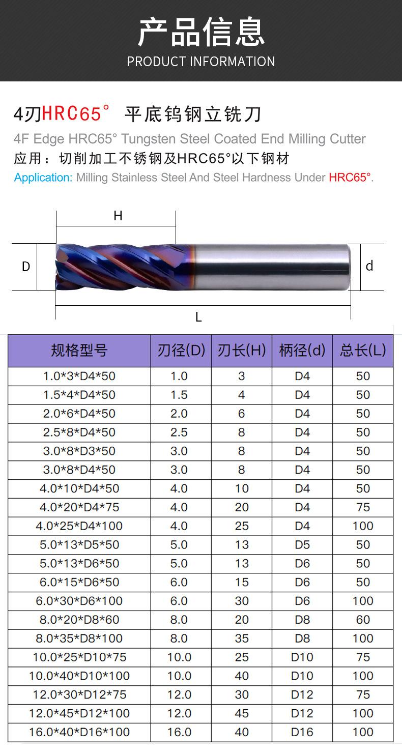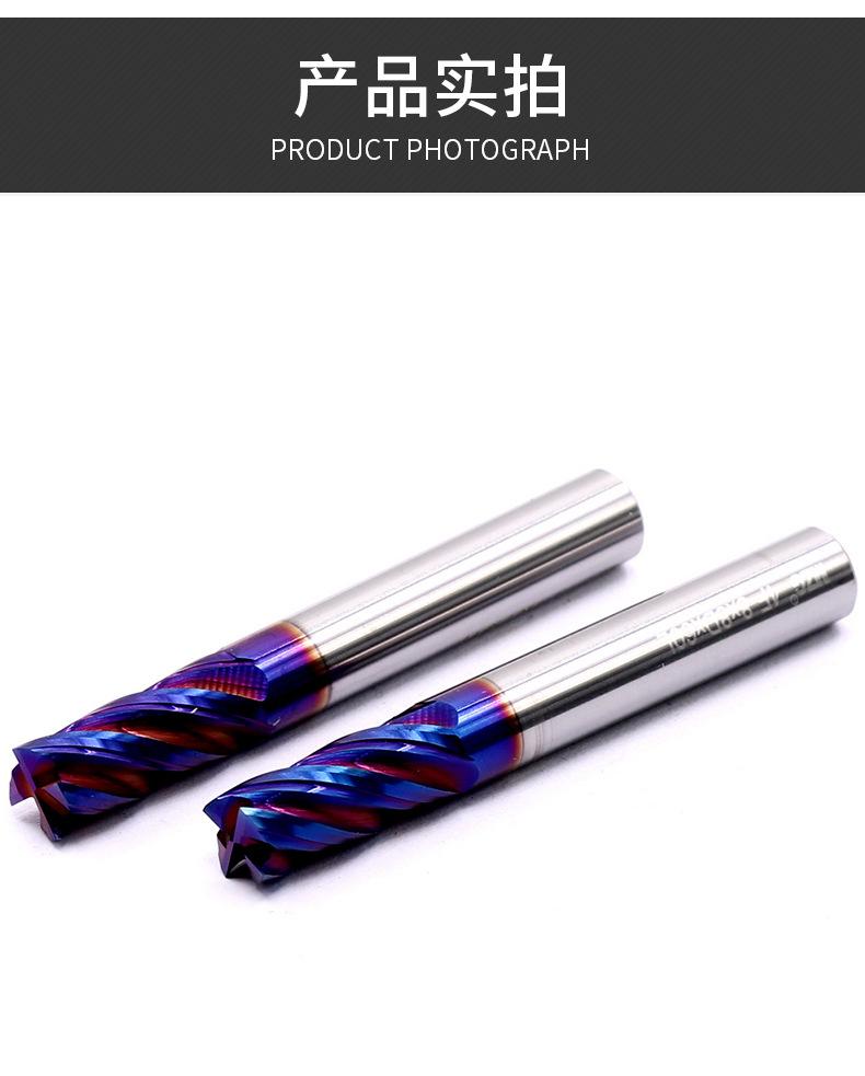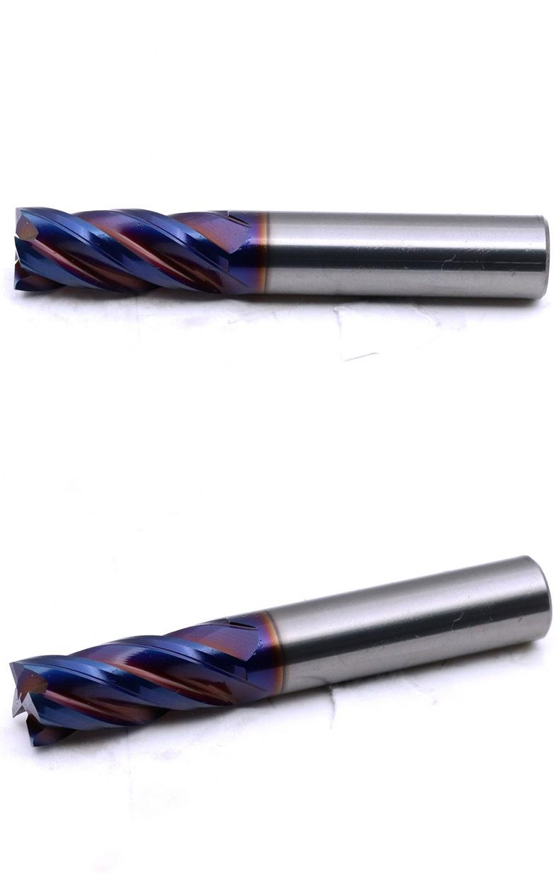 Fresa de acero de tungsteno de 65 grados de Taiwán, fresa de aleación de acero de tungsteno con revestimiento azul de 4 hojas, fresa de extremo para centro de mecanizado CNC