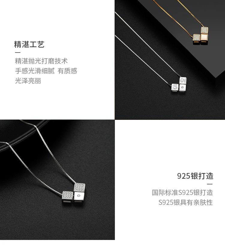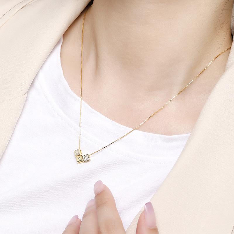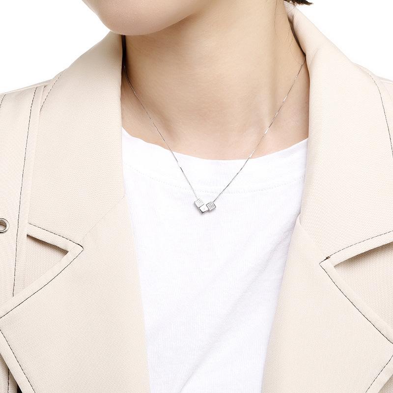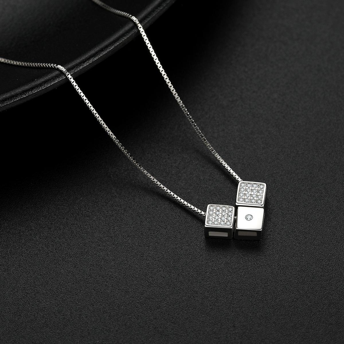 Collar cuadrado tridimensional de plata esterlina s925, nuevo diseño de lujo ligero, sentido simple, doble cara, cadena de clavícula con personalidad, venta al por mayor