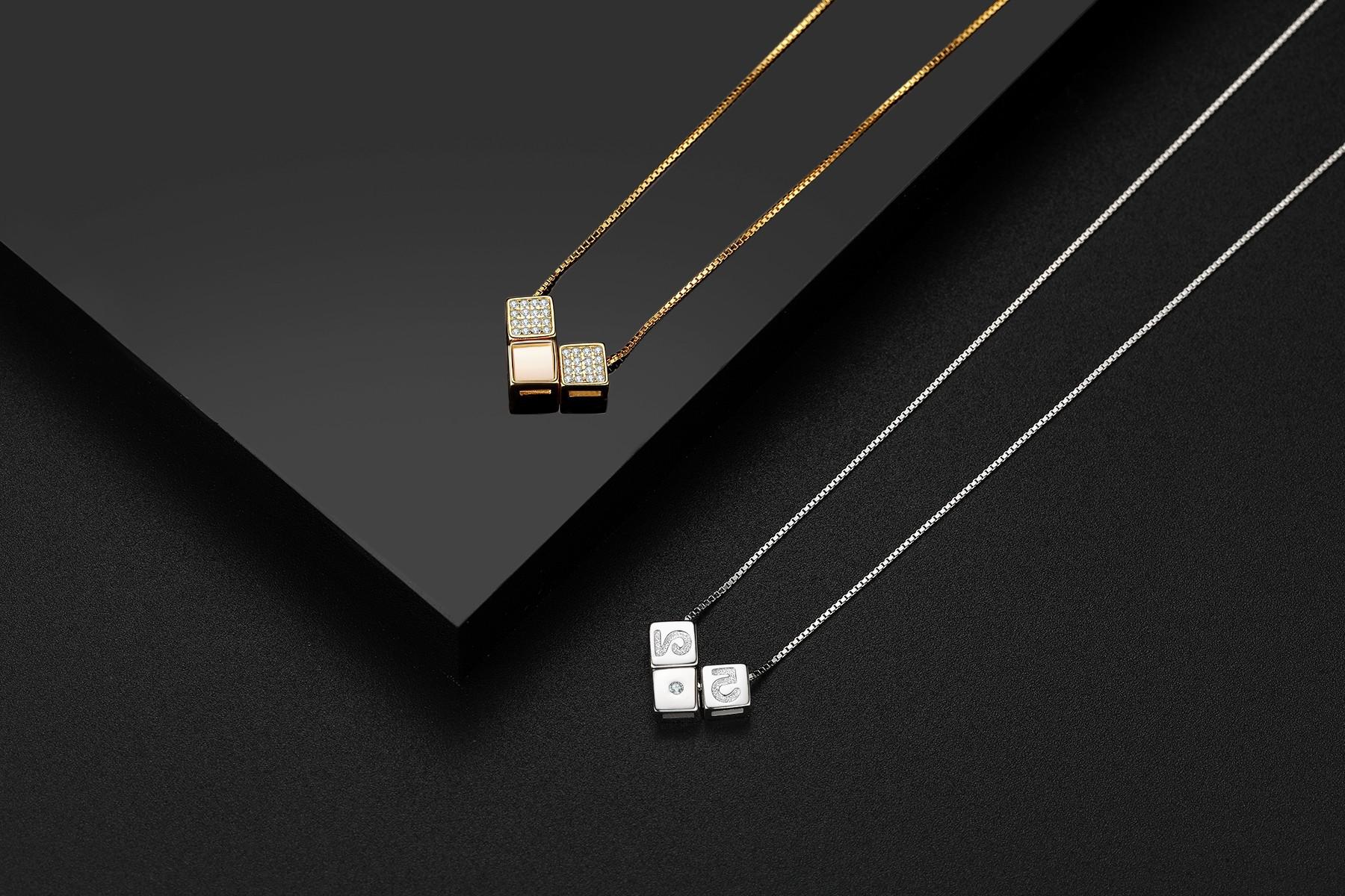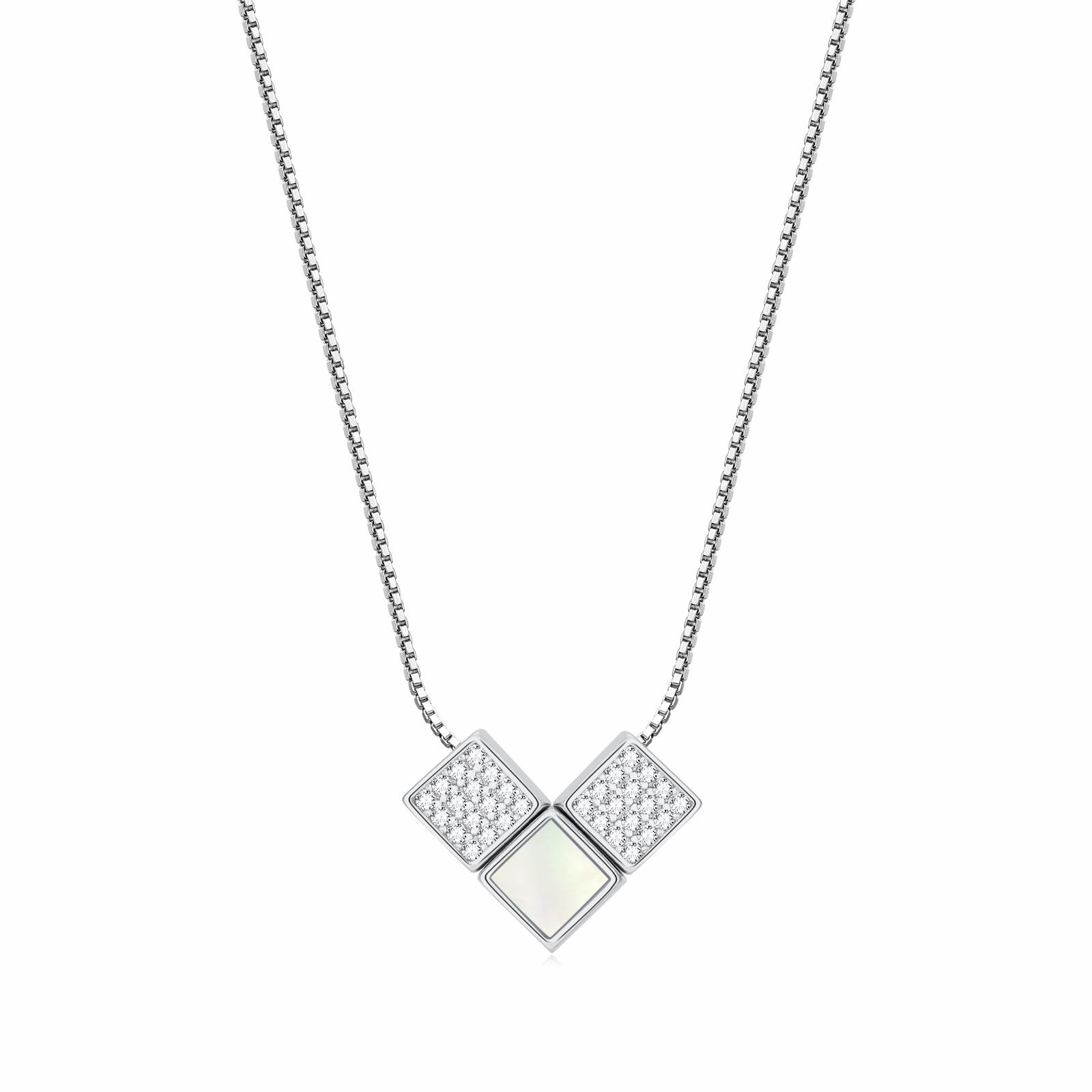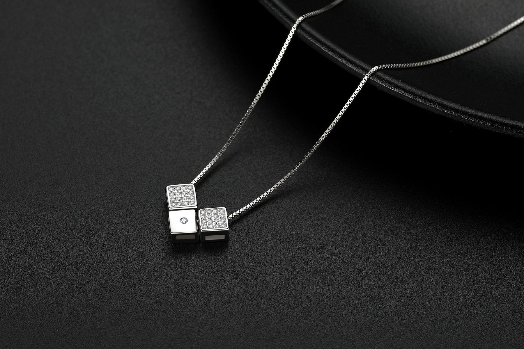 Collar cuadrado tridimensional de plata esterlina s925, nuevo diseño de lujo ligero, sentido simple, doble cara, cadena de clavícula con personalidad, venta al por mayor