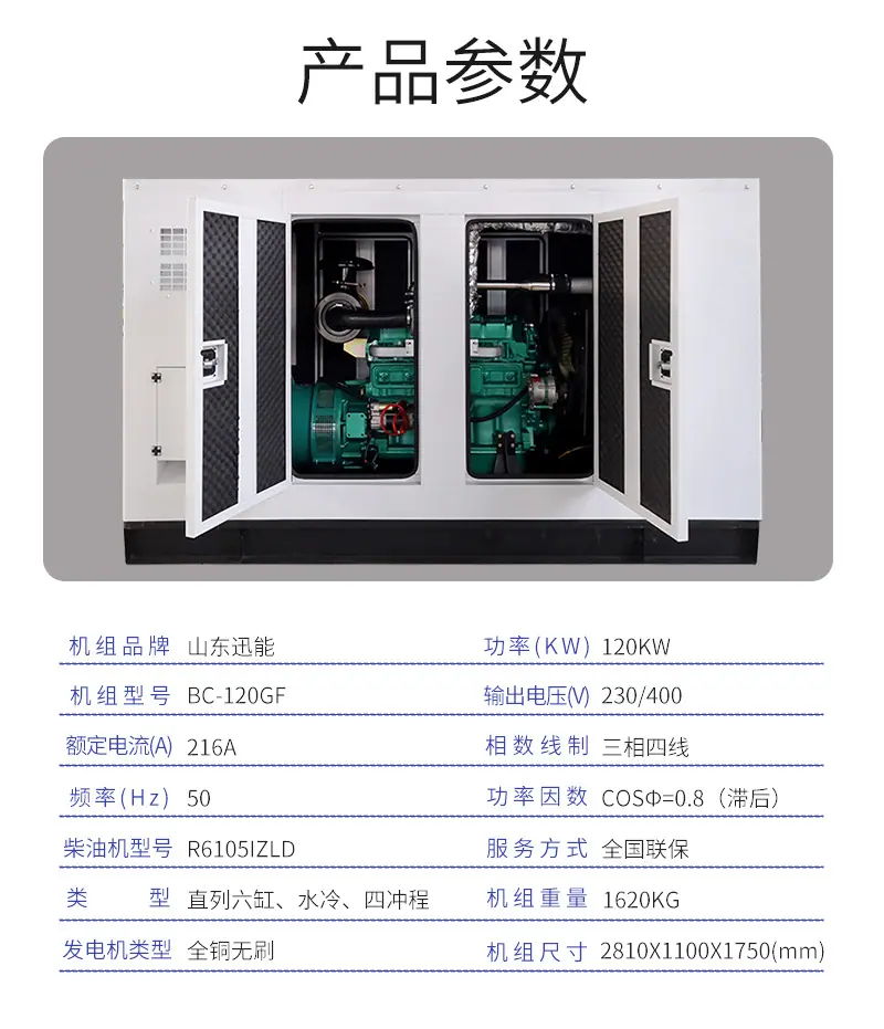 Generador diésel de bajo ruido con motor síncrono de CA refrigerado por agua, grupo electrógeno Weifang de 120 kW de bajo ruido