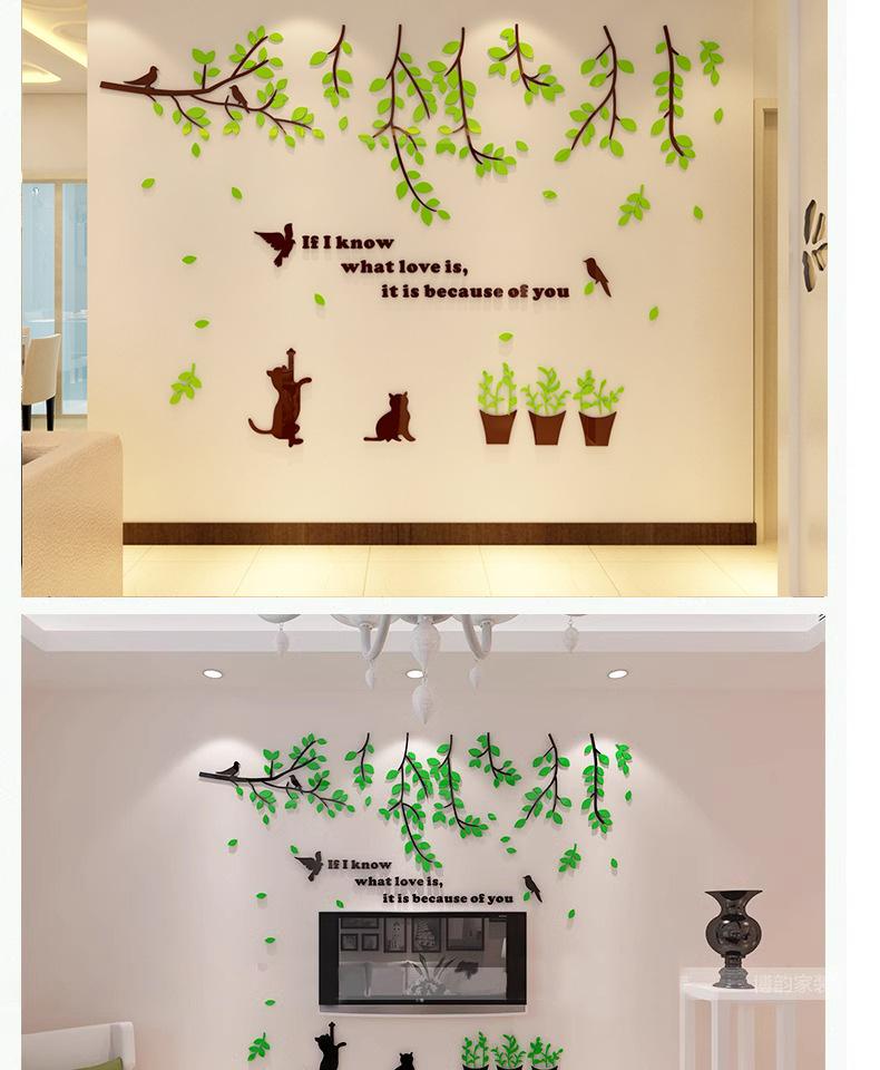 Pegatinas de pared acrílicas 3D con diseño de rama de TV, fondo de pared, decoración de interiores, pegatinas para pared de jardín de infantes