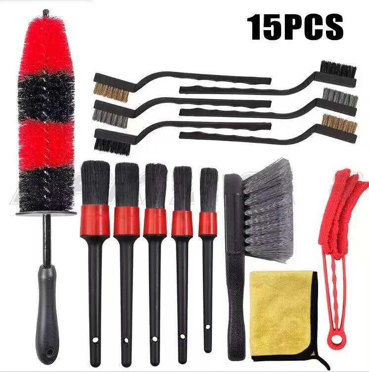 Venta caliente transfronteriza de 15 piezas de cepillos de limpieza para automóviles, taladro eléctrico, cabezal de cepillo, cepillo de limpieza para neumáticos, cepillo de lavado interior y exterior para automóviles.