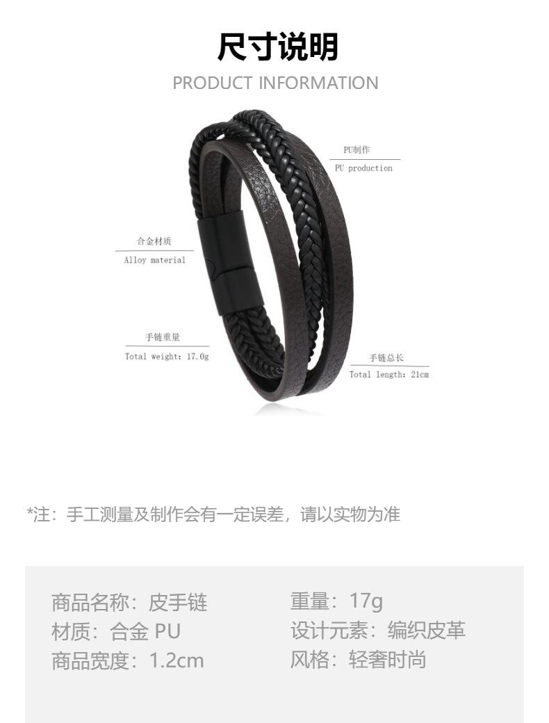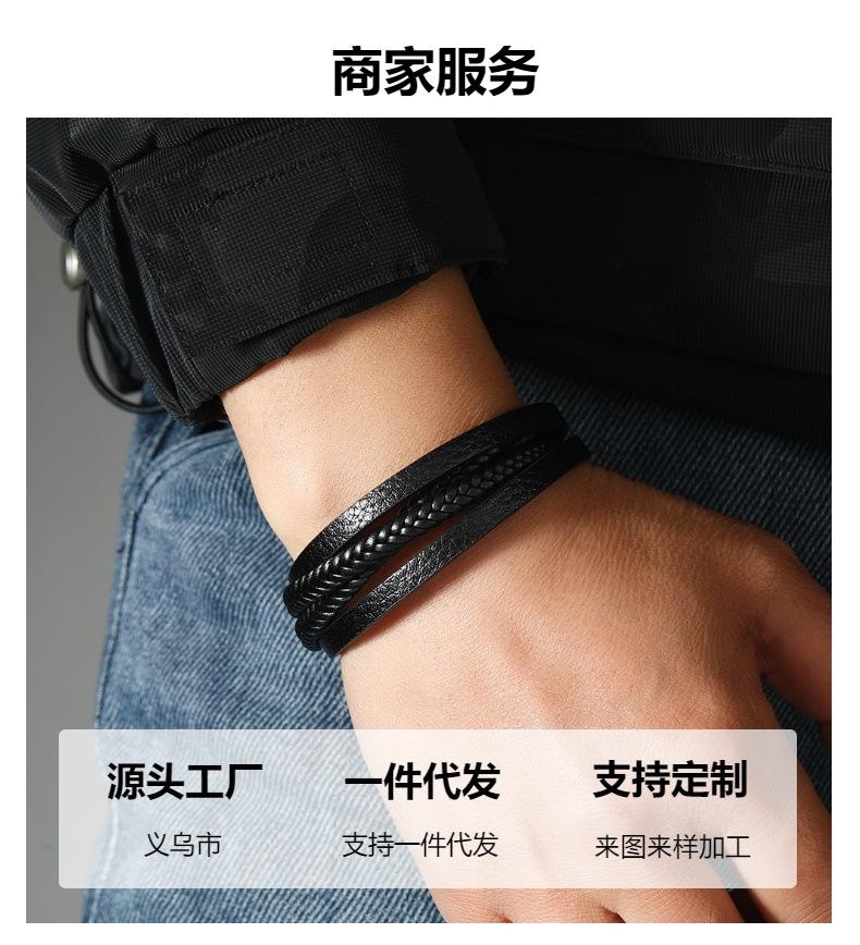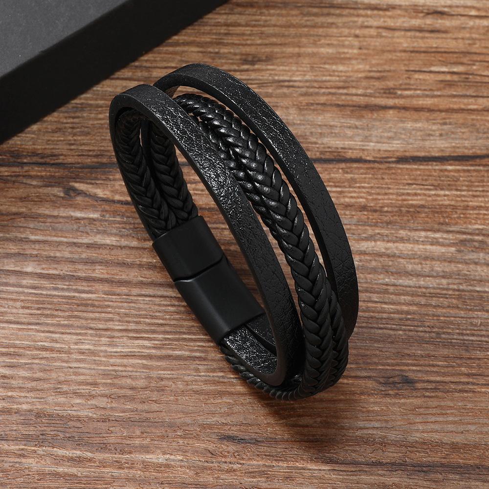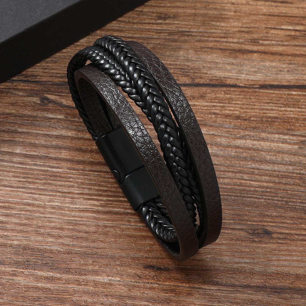 Pulsera de cuero tejido multicapa para hombre, aleación chapada en negro, hebilla magnética, unisex, pulsera popular de Amazon