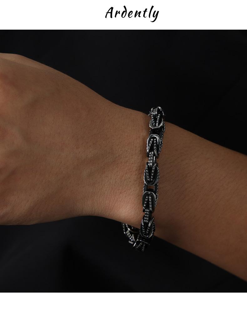 Compra Pulsera de joyería de metal pesado retro de acero de titanio con diseño de nicho de personalidad de alto grado transfronterizo europeo y americano al por mayor en Joom.pro