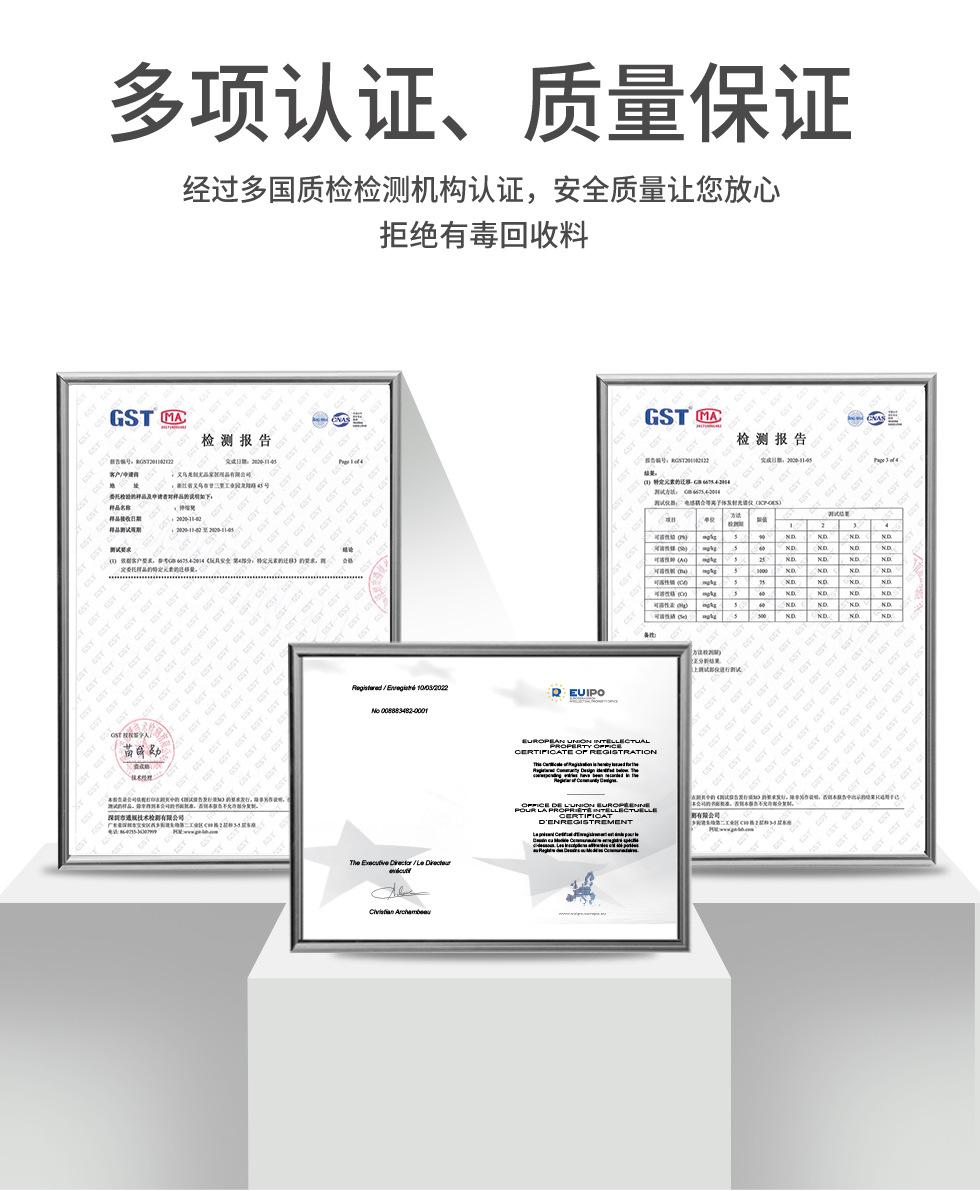 Nuestro conjunto completo de informes de prueba en la Unión Europea, los Estados Unidos y China son todos informes de prueba autorizados emitidos por los laboratorios ITS. CPC, CPSIA?, ASTM, REACH, EN581 y NFD60 han pasado todos y tienen calidad garantizada.