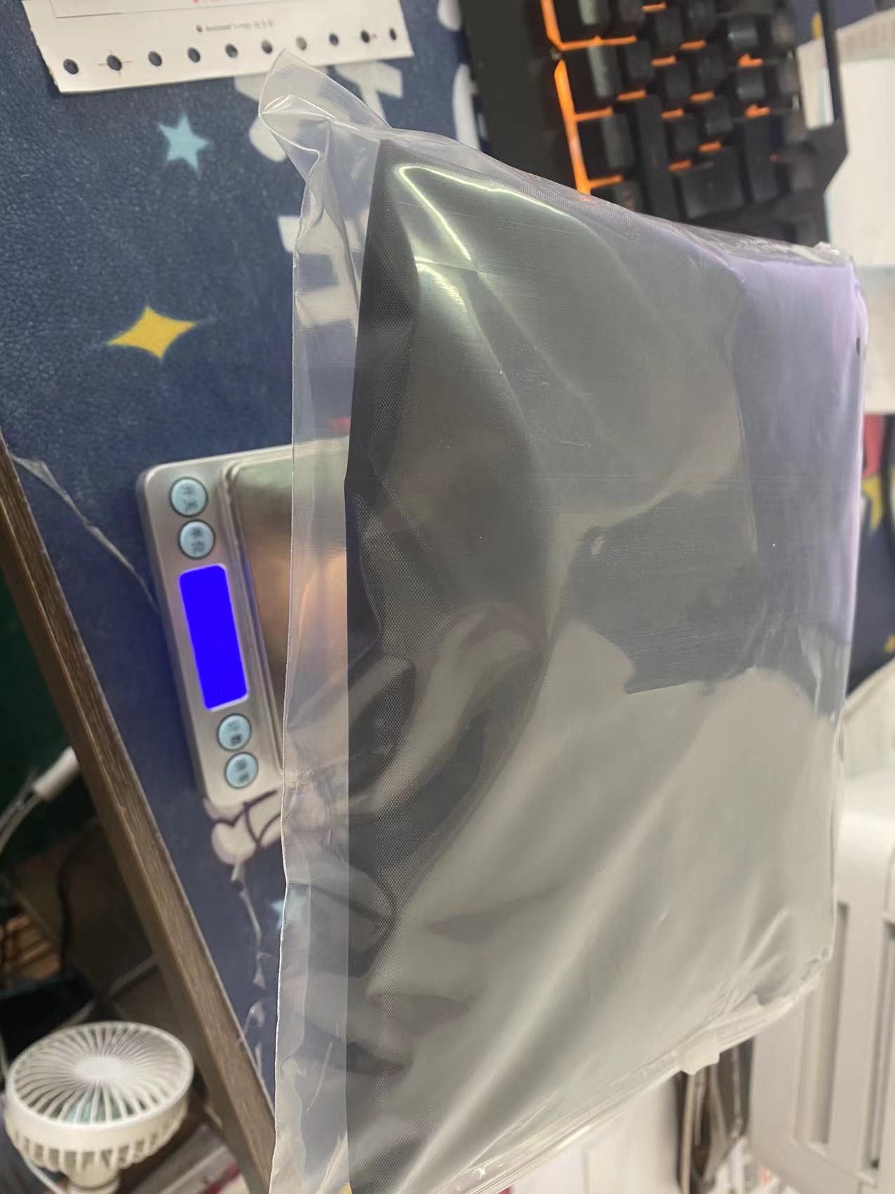 El peso de la tela Oxford es de aproximadamente 430g. El tamaño del embalaje es 23*22*5cm. Hay una tabla de pesaje en la parte inferior.