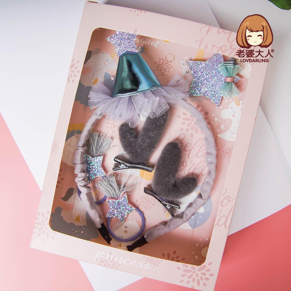 Accesorios para el cabello de princesas para niñas, conjunto de diademas y horquillas, regalo de cumpleaños, caja de regalo