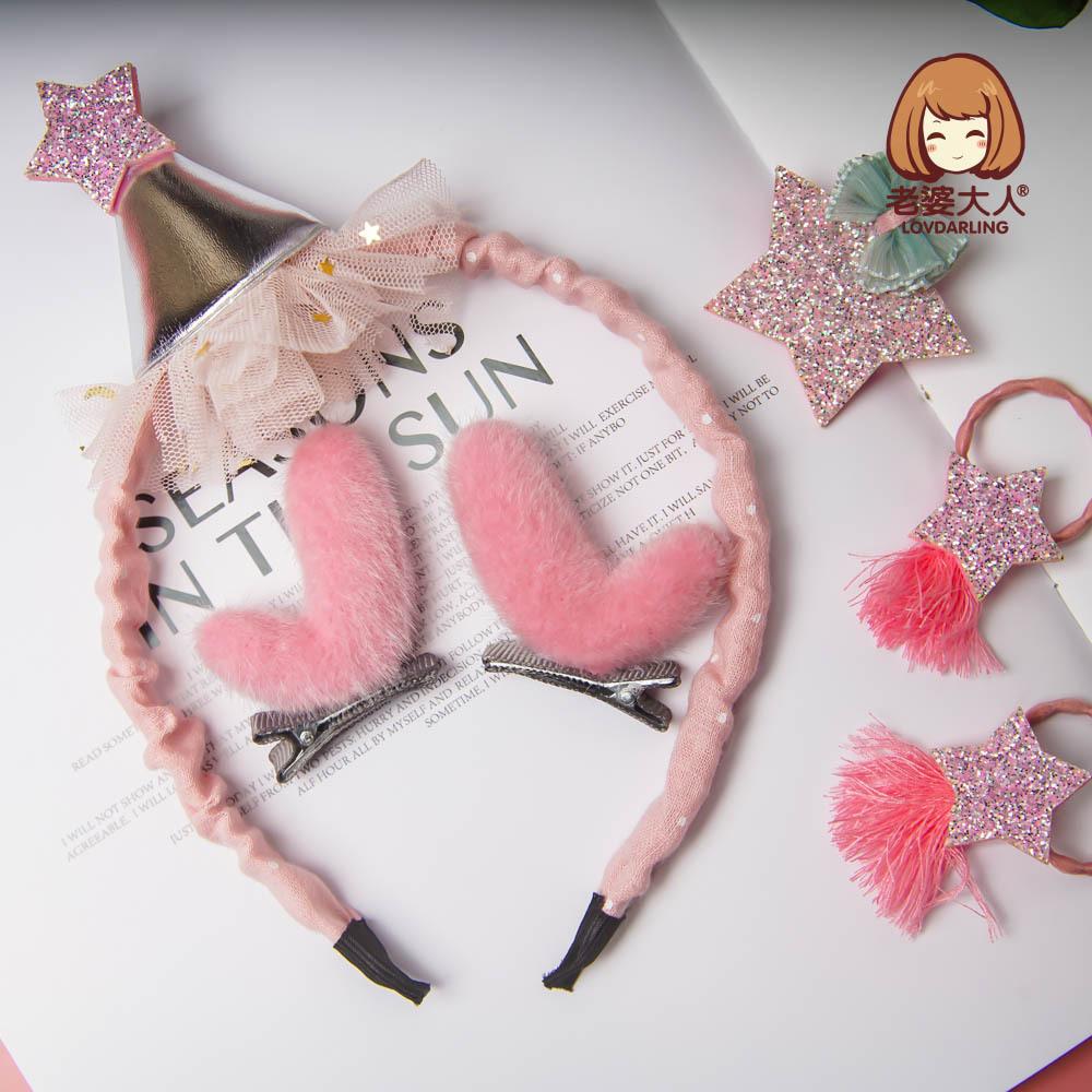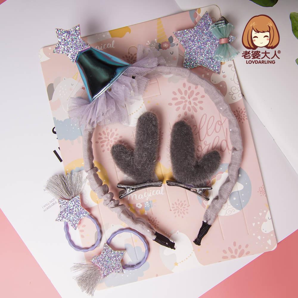 1 Unicorn Hairpin Set, 2 Little Bee Flower Set, 3 Bunny necklace hairpin set, 4 Pink Sunflower Bow Headband Se...