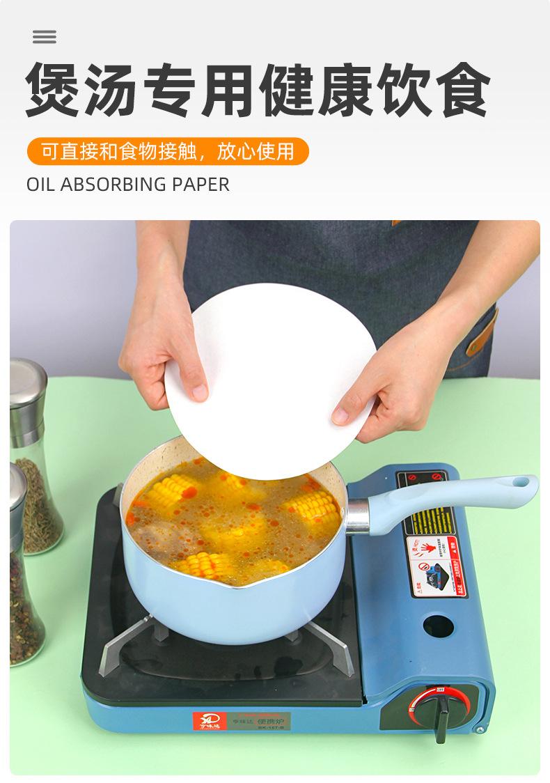 Papel absorbente de aceite para sopa, de grado alimenticio, para cocina, hogar, desechable, filtro de aceite para freír, especial para hornear, ollas calientes.