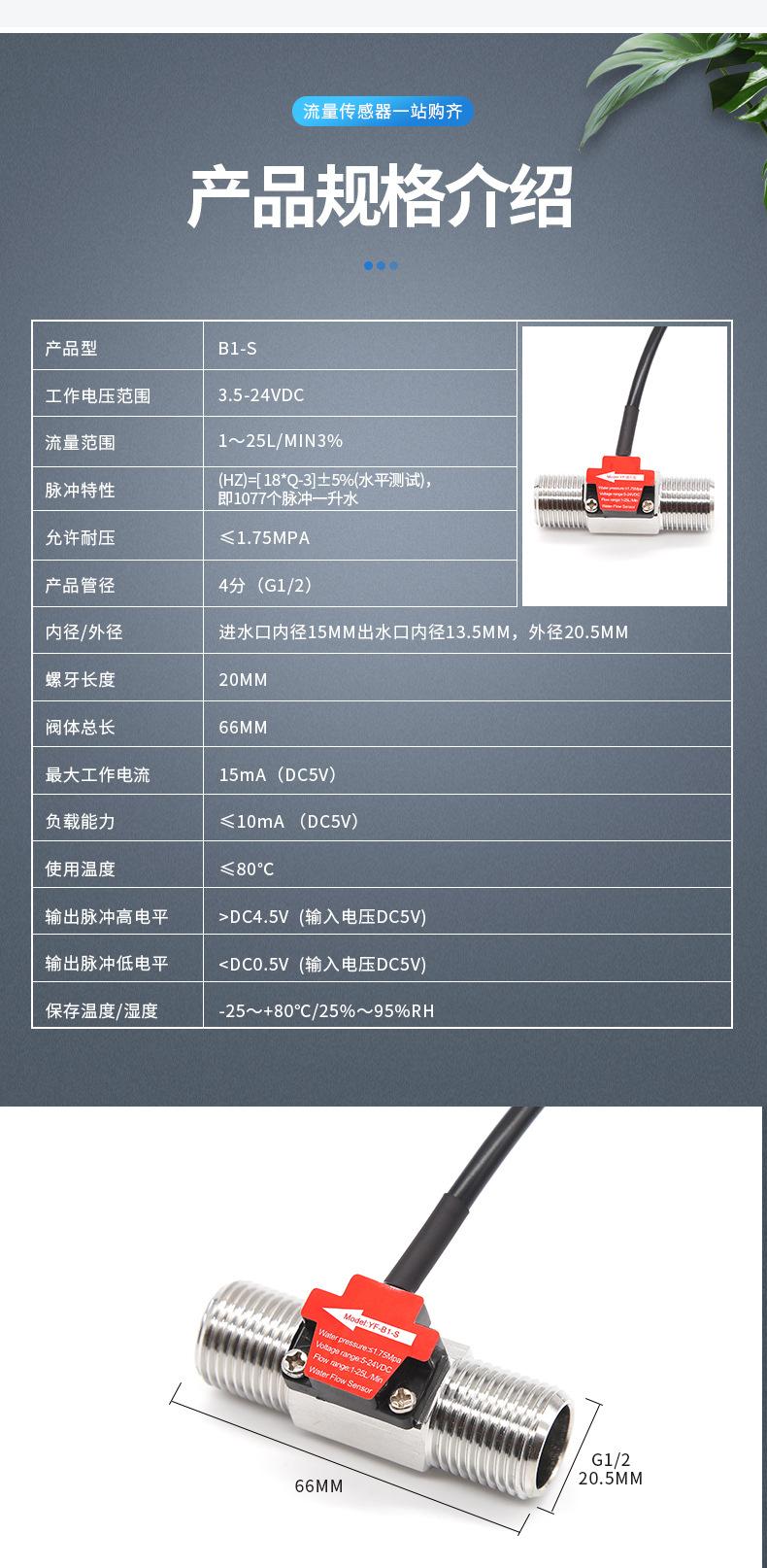4 A cargo del medidor de flujo sensor de acero inoxidable flujo de agua calentador de agua sensor de flujo turbina B1 acero inoxidable diente largo