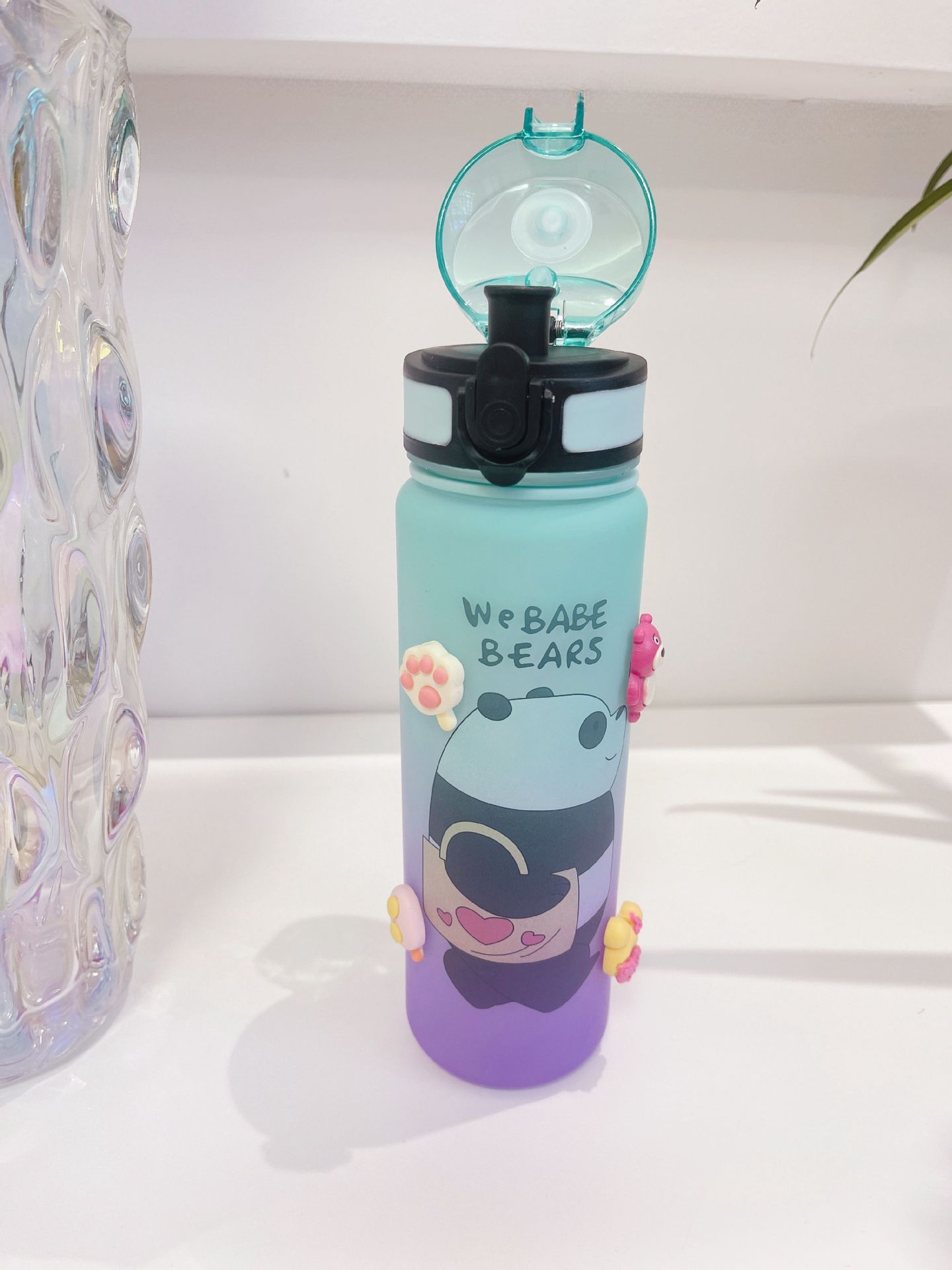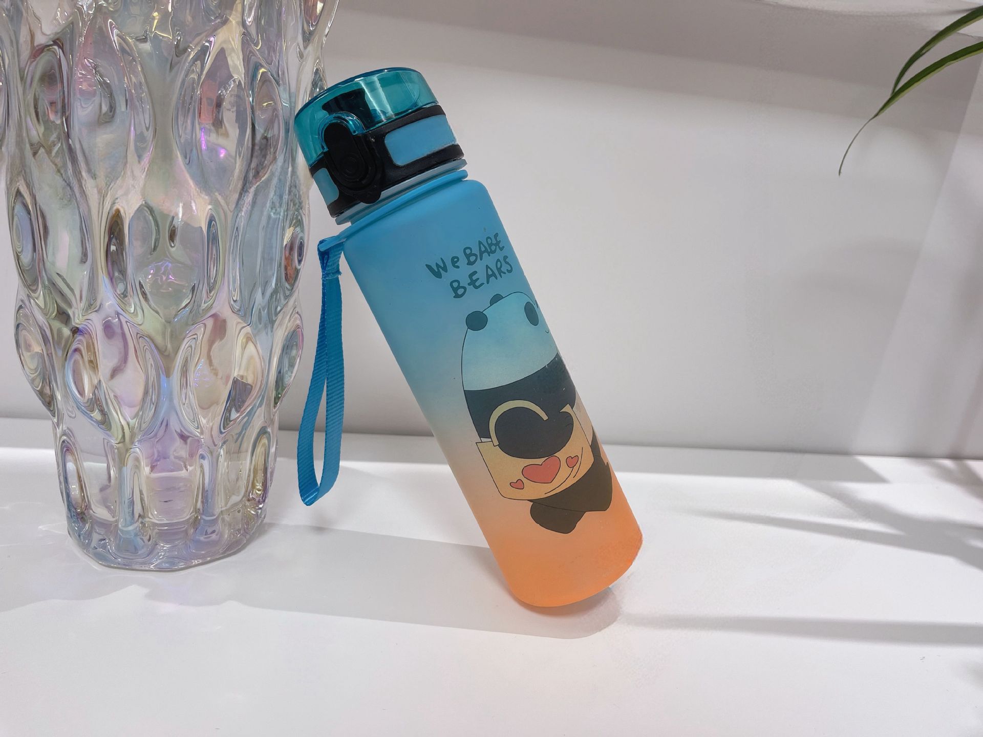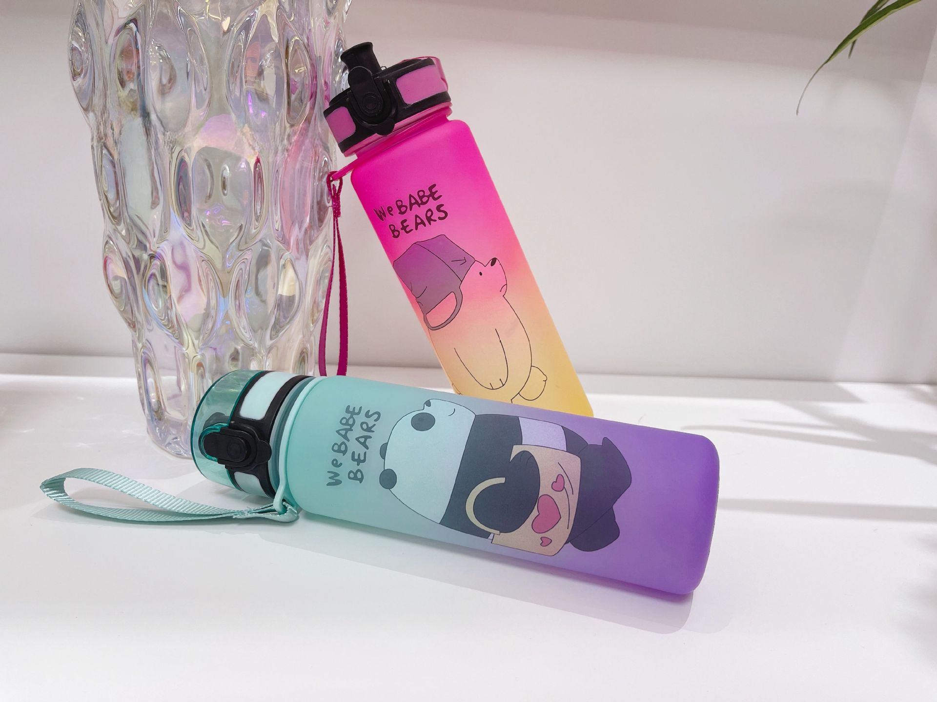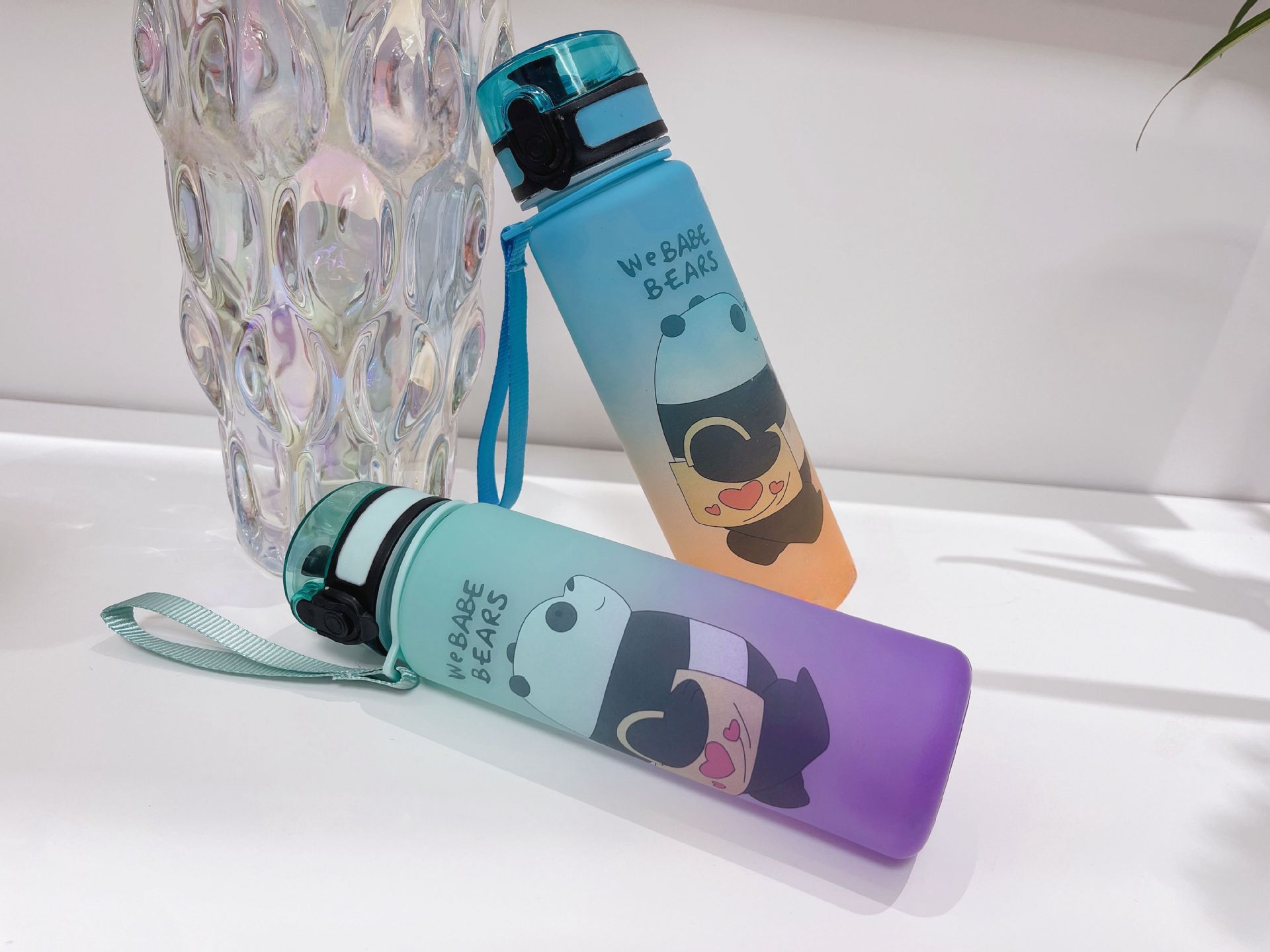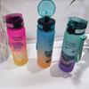 Vaso de agua deportivo de plástico de gran capacidad con cubierta elástica esmerilada degradada, vaso de paja, hervidor de fitness portátil para exteriores con cubierta elástica