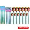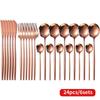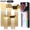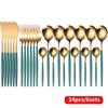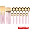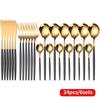 Vajilla de Acero Inoxidable Transfronteriza de Amazon Juego de 24 Piezas Tenedor Cuchara Comida Occidental Juego de Cuchillo y Tenedor Cuchara Portugués Cuchara Tenedor Dorado
