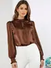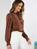 Europeo y Americano 2025 Primavera Transfronterizo Nuevo Elegante Color Puro Cuello Redondo Manga Larga con Cordones Recto Satén Tops Camisa para Mujer