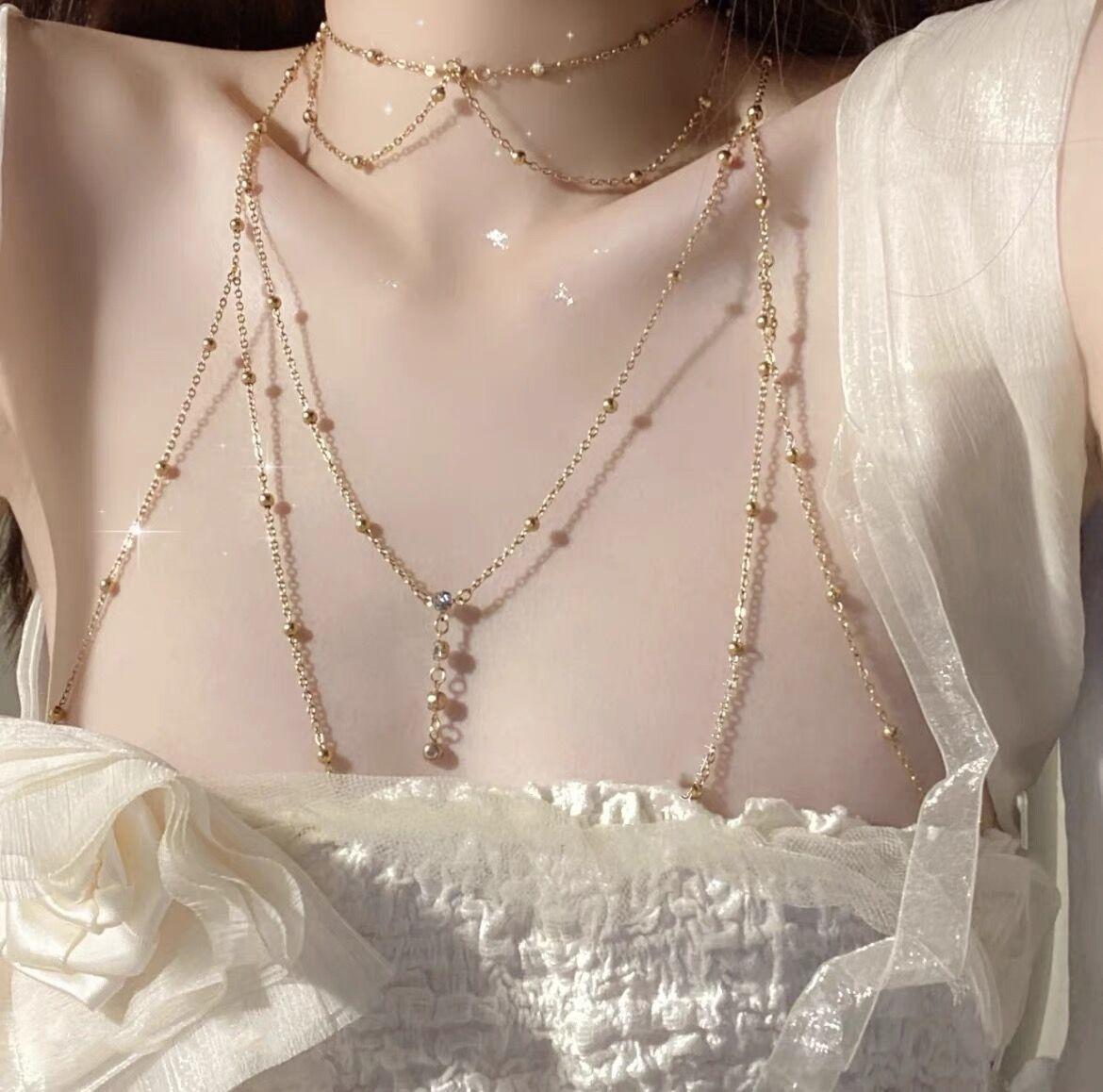 Cadena estilo Pure Desire con borlas y múltiples capas apiladas para el cuerpo, cadena sexy para el pecho, cadena para la espalda, accesorios, cadena para el cuerpo de moda