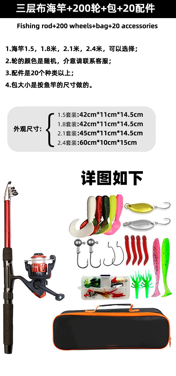 Juego de caña de pescar transfronteriza, equipo de pesca, caña de pescar, mini caña de pescar portátil, juego completo, juego de caña de señuelo, juego completo de caña de pescar
