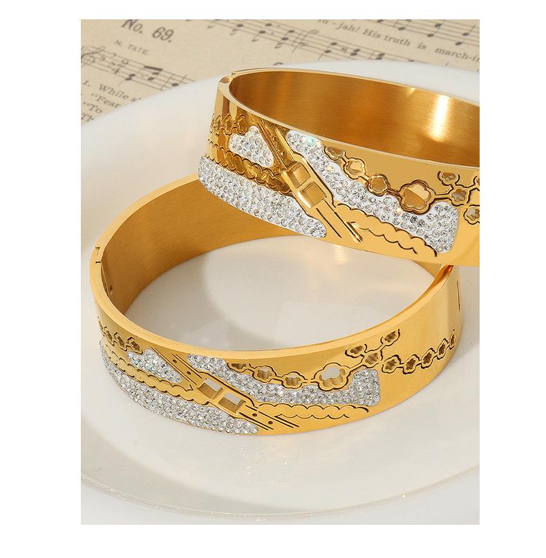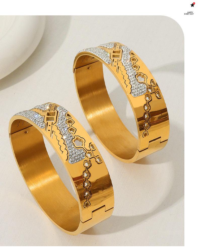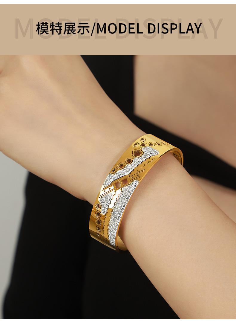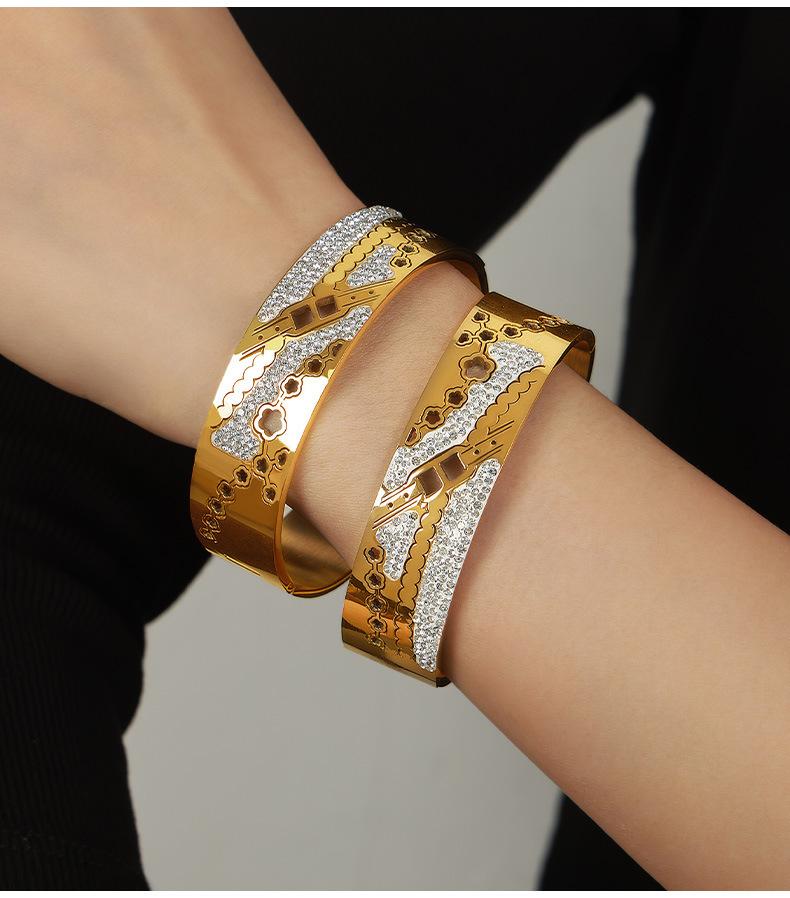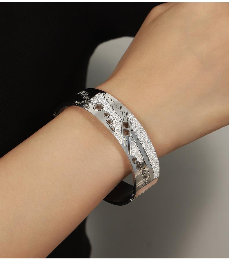 Pulsera de diseño de diamante irregular de acero de titanio con cadena de flores huecas para mujer, joyería de nicho única de palacio estilo nacional