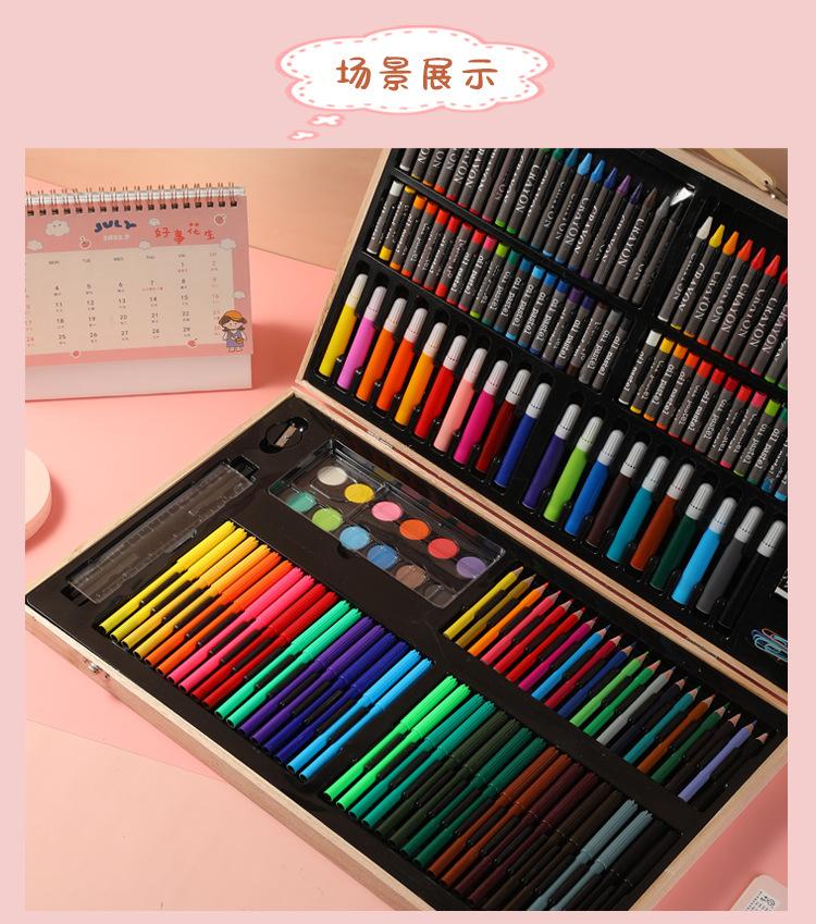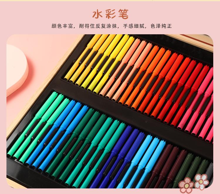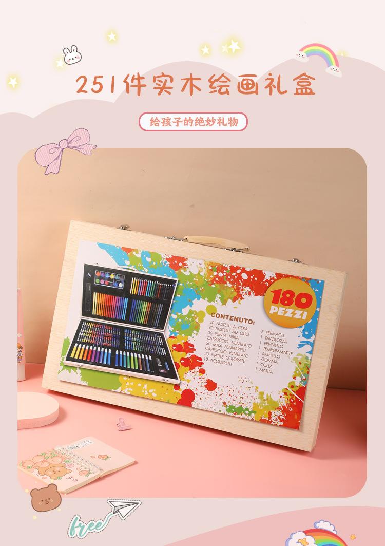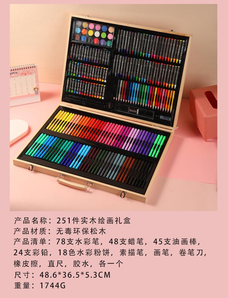 Traje de pintura de caja de madera de 251 piezas para niños, pluma de acuarela, pintura artística, pincel especial, crayón, mina de color, papelería para aprendizaje
