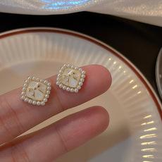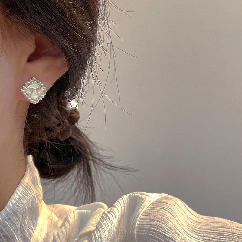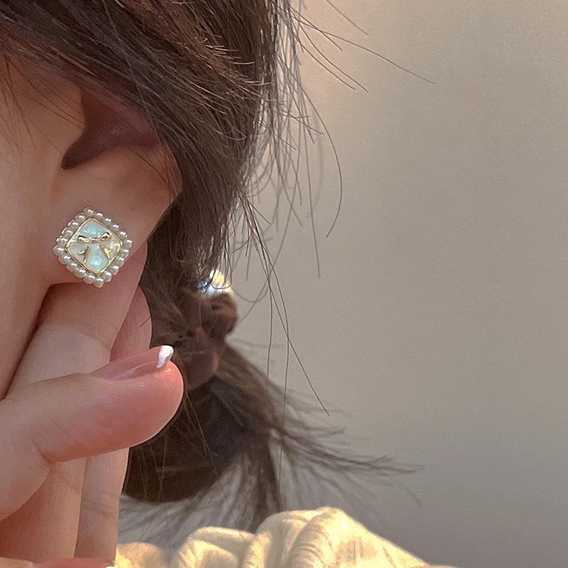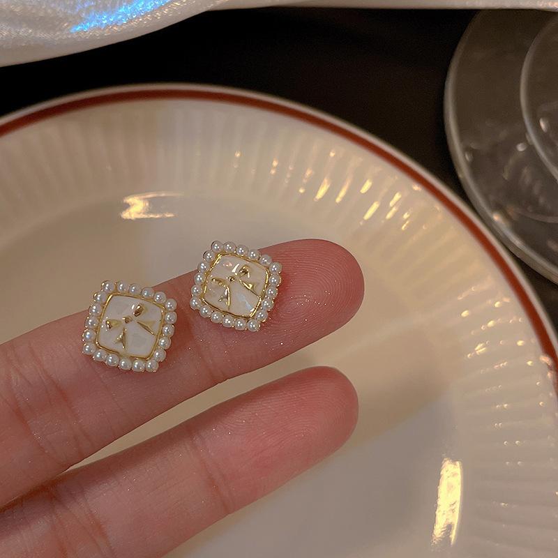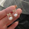 Aretes de perlas con lazo estilo ins diseño nicho aretes de temperamento de alta gama aretes versátiles para mujer aretes de celebridad de internet al por mayor