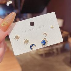 Aretes de planeta de circonita micropavé de aguja de plata 925 estilo ins diseño nicho aretes de lujo ligero de alta gama joyería versátil para mujer