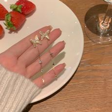 Aretes largos de borla de mariposa de perla súper brillantes para mujer aguja de plata s925 aretes de lujo ligero y atmosféricos de alta gama aretes versátiles