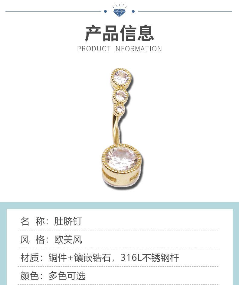 Anillo de ombligo Gaby, estilo europeo y americano, con circonitas, diseño de personalidad simple, diamantes, fabricantes de uñas, joyería con punción.