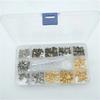 Viene con 135 juegos de remaches de tapa simple en 3 tamaños diferentes.
