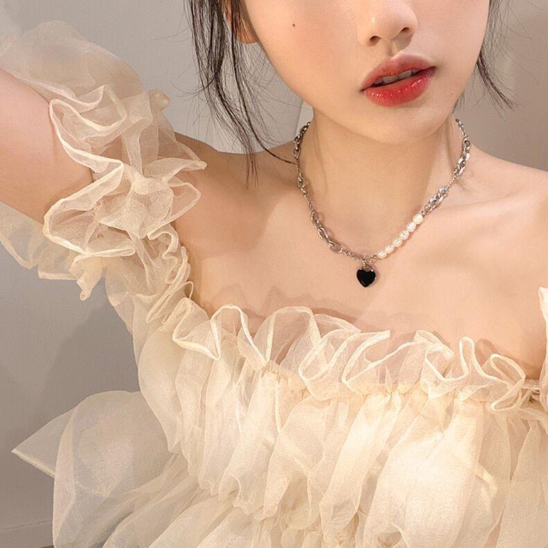Collar de amor con costura de perlas barrocas para mujer, diseño de alta gama de verano, cadena de clavícula exquisita, dulce y genial.