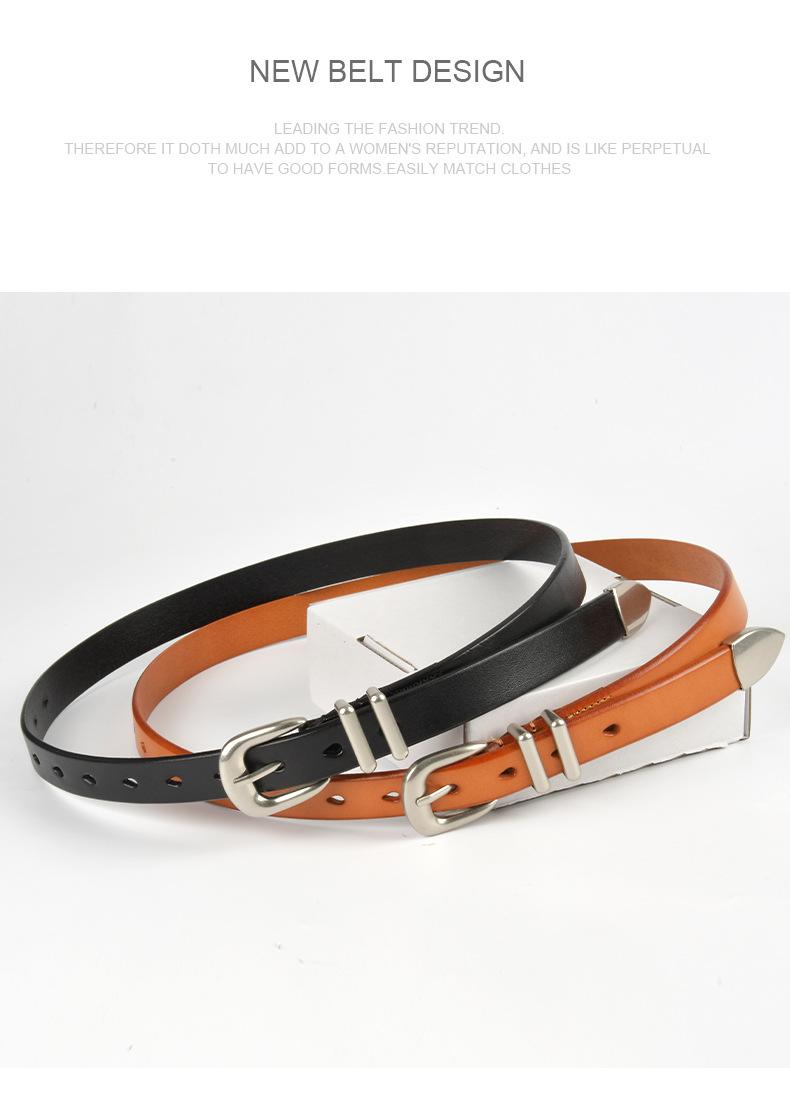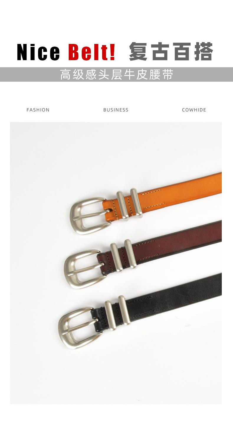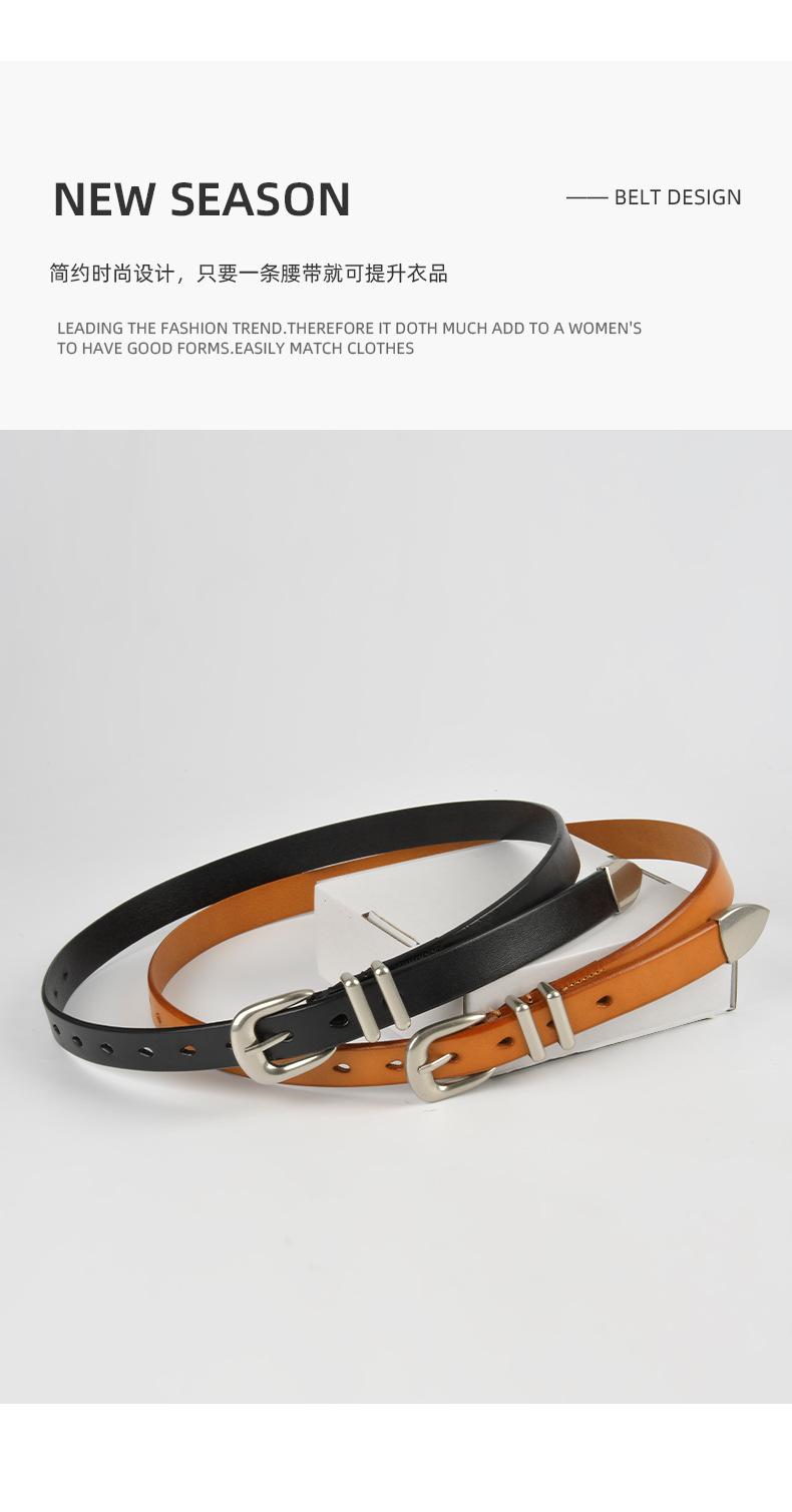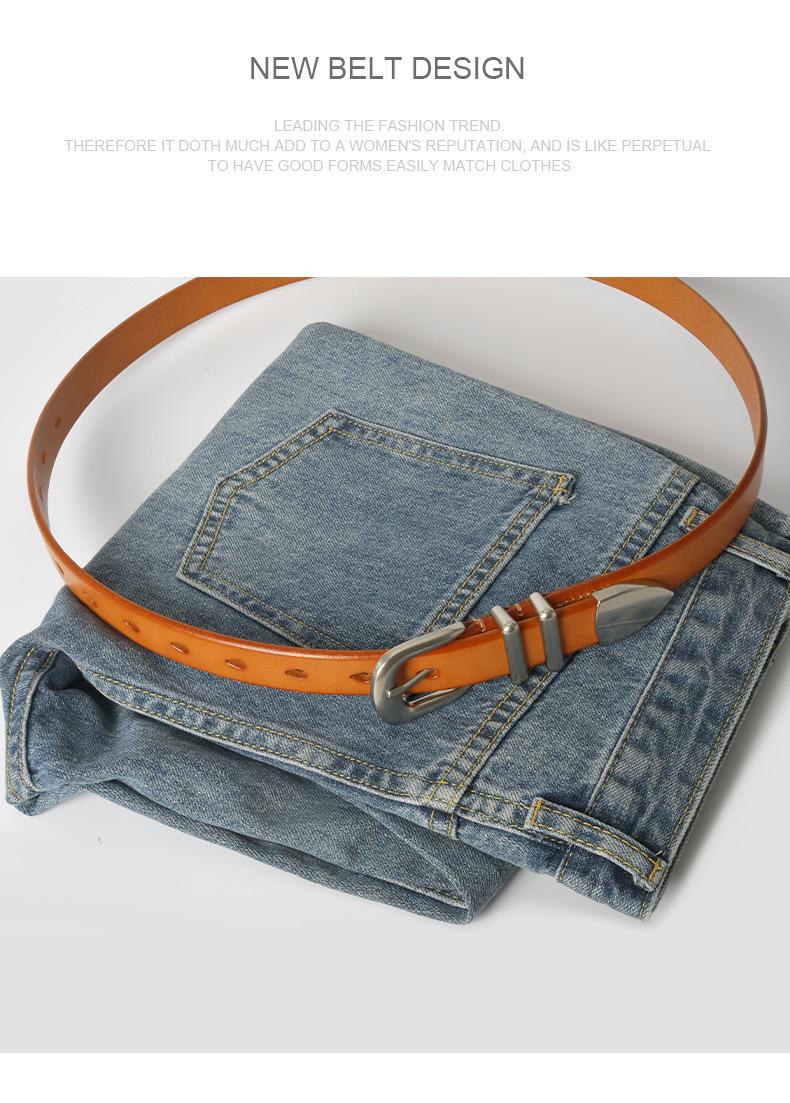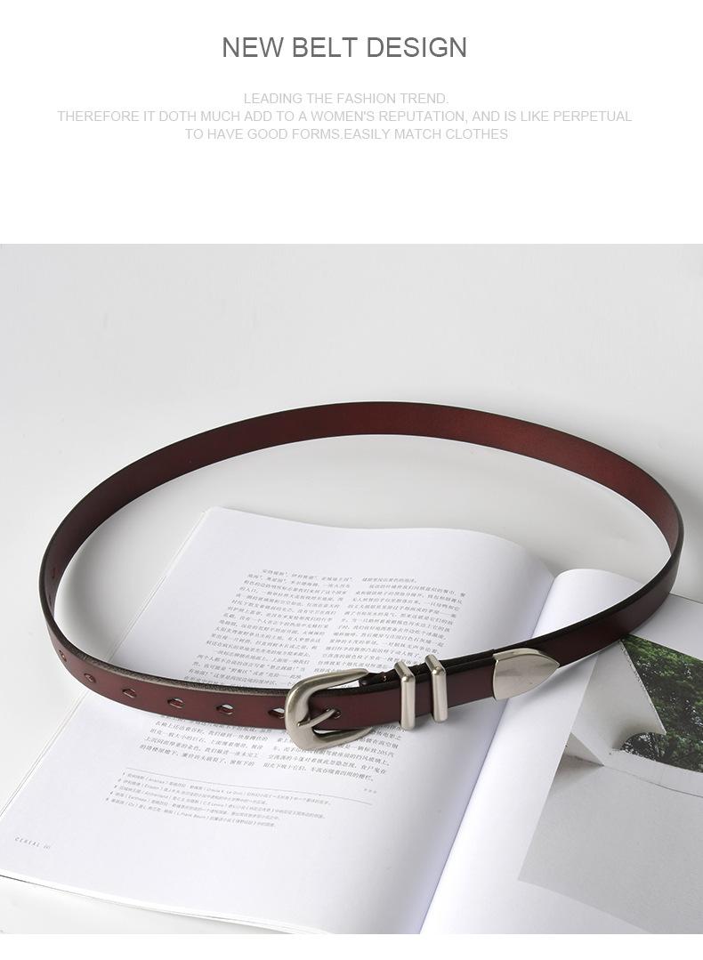 Compra Cinturón de mujer de piel de vaca de primera capa, hebilla plateada combinable, cinturón vintage para jeans, pantalones casuales, cinturón delgado de mujer al por mayor en Joom.pro