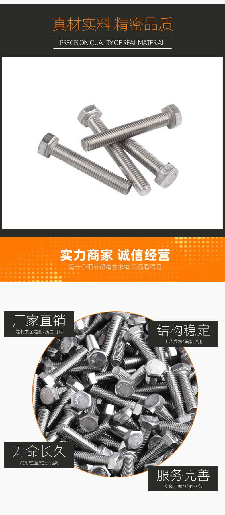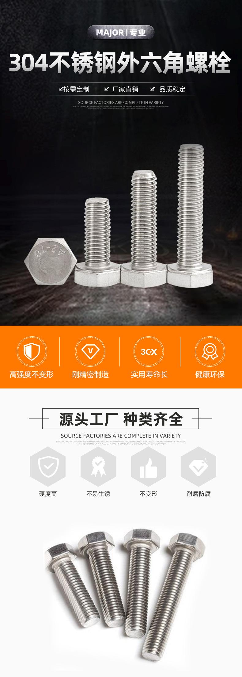 Tornillo hexagonal exterior de acero inoxidable 304 DIN933, piezas estándar, tornillo M12M14M16-M20, perno hexagonal exterior