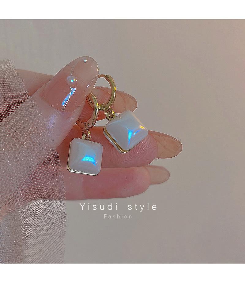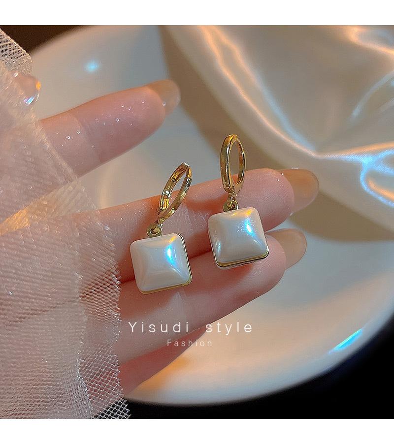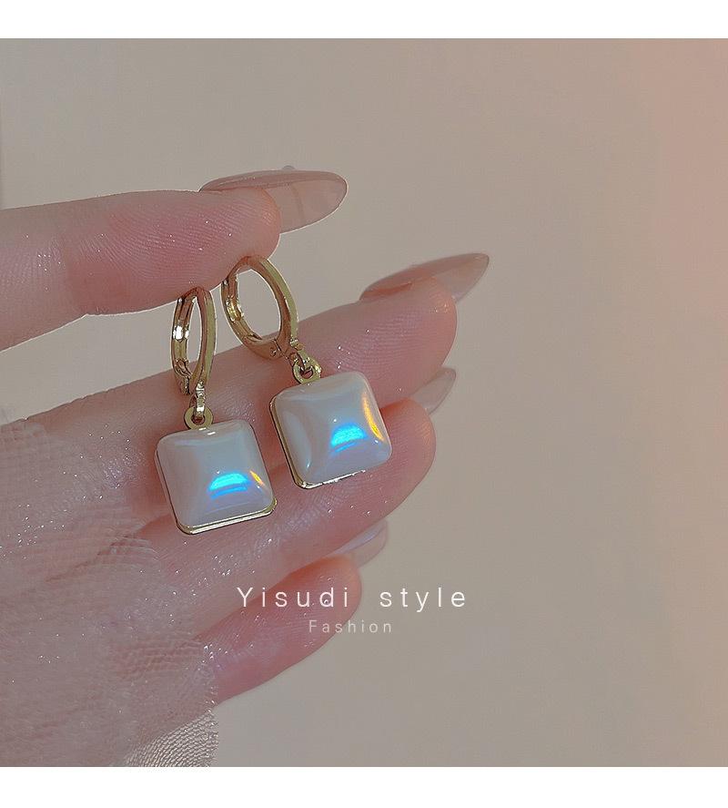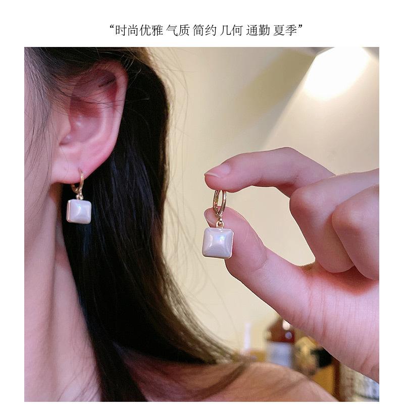 Pendientes coreanos ligeros de lujo de doble cara con perlas para mujer, pendientes con diseño geométrico versátil de nicho, pendientes de celebridades de Internet de moda.