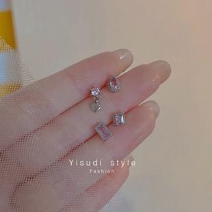 Conjunto de cuatro pendientes de plata s925 con circonita rosa y aguja para mujer, pequeños, exquisitos, de alta gama, con temperamento y estilo frío.