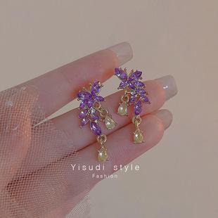 Pendientes de mariposa con circonita morada y aguja de plata S925, ligeros y lujosos, con diseño de nicho en forma de gota, para mujer.