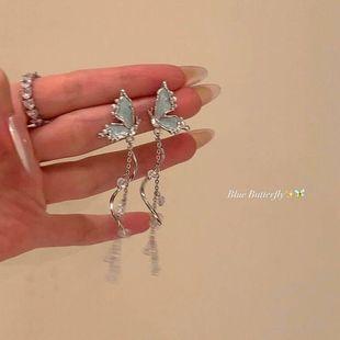 Pendientes únicos con borlas de perlas y mariposas para mujer, de lujo ligero, de nicho, de alta gama, largos, con un temperamento de súper hada al por mayor.