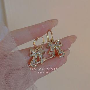 Pendientes coreanos con forma de lazo de diamantes y perlas para mujer, de moda, combinables, de alta gama, con diseño de nicho.